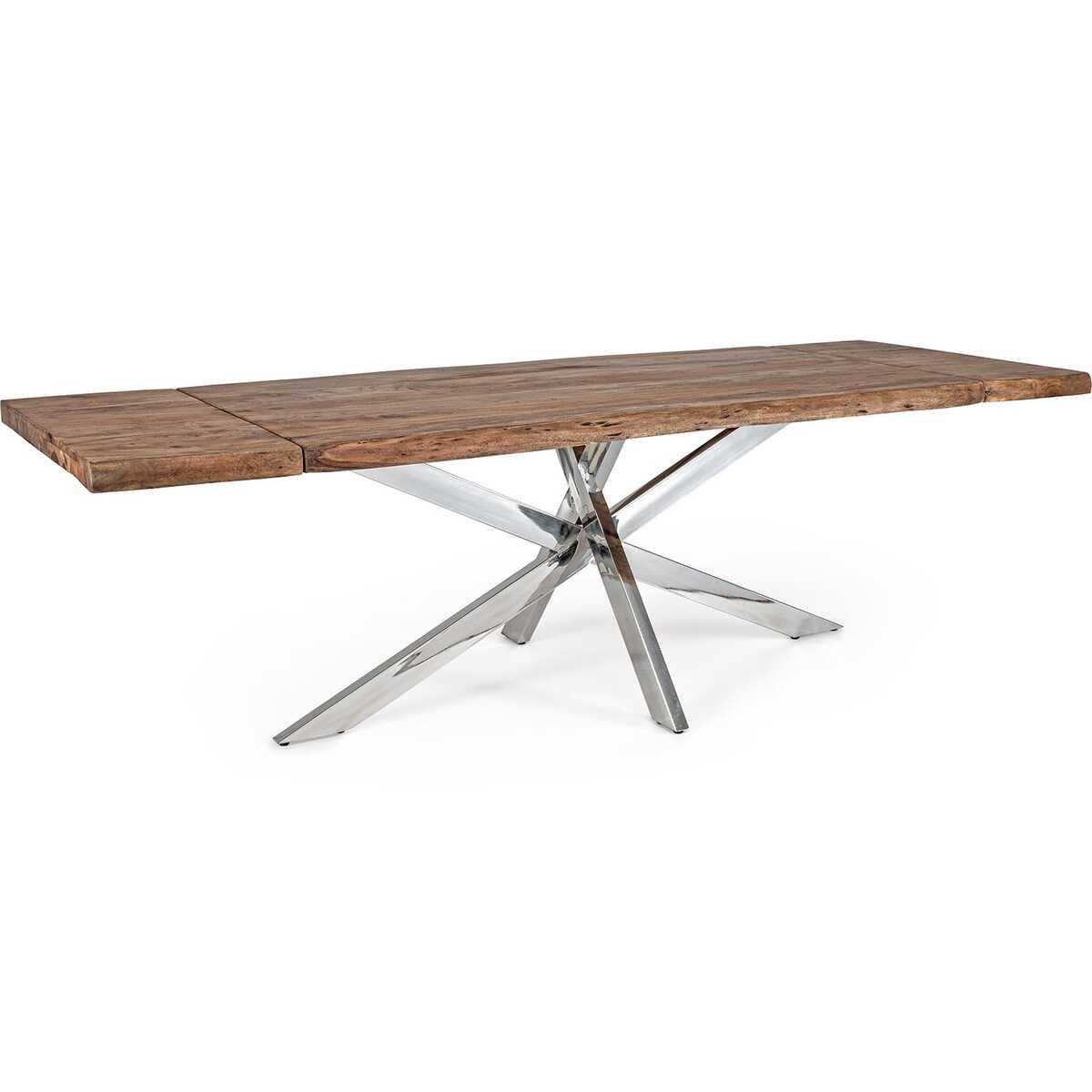 Ausziehtisch Arkansas, Beine aus Rostfreiem Stahl, Tischplatte aus Akazienholz (Original-Stammabschnitte). Schutz Acrylfeinbearbeitung. 2 Externe Verlängerungen von 40 cm. Da es sich Um Eine Handgefertige Platte Handelt, sind Die Formen und Abmessungen Des Holzes nur Indikativ. Alle Produkte Werden sich voneinander Unterscheiden.