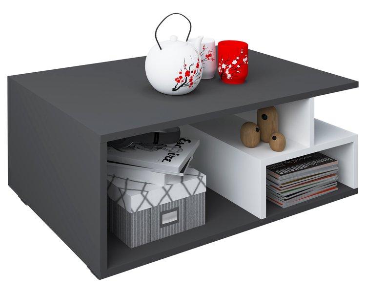 Der Couchtisch "Sulas" integriert sich durch das zeitlose Design nahezu jedem Wohnzimmer an. Vier große, offene Fächer bieten ausreichend Platz für verschiedene TV-Utensilien, Zeitschriften, Bücher oder Dekoartikel.