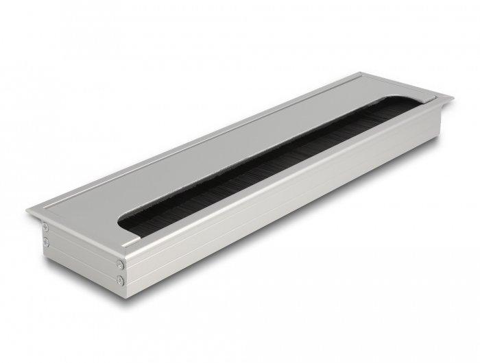 DeLock Kabeldurchführung für Tischeinbau mit Bürste 300 x 80 x 28 mm silber