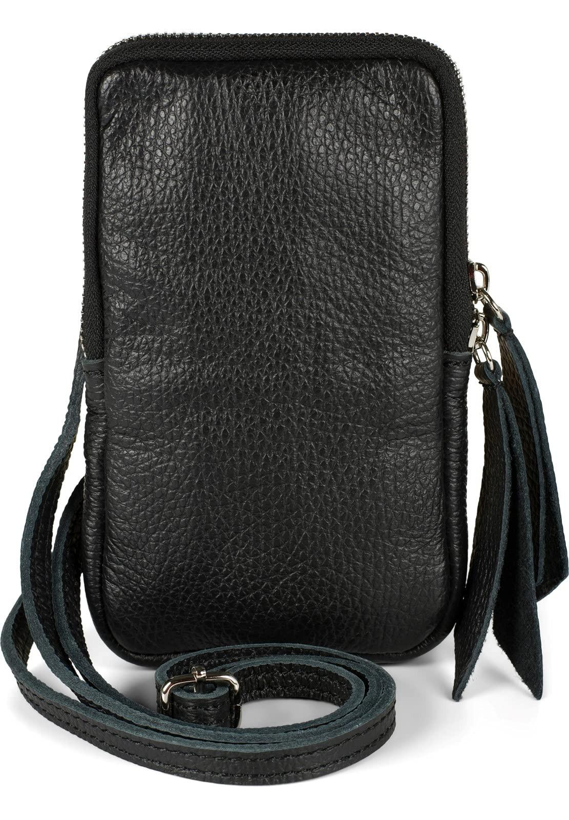 Only-bags.store Leder Handy Umhängetasche mit genarbter Oberfläche Reissverschluss