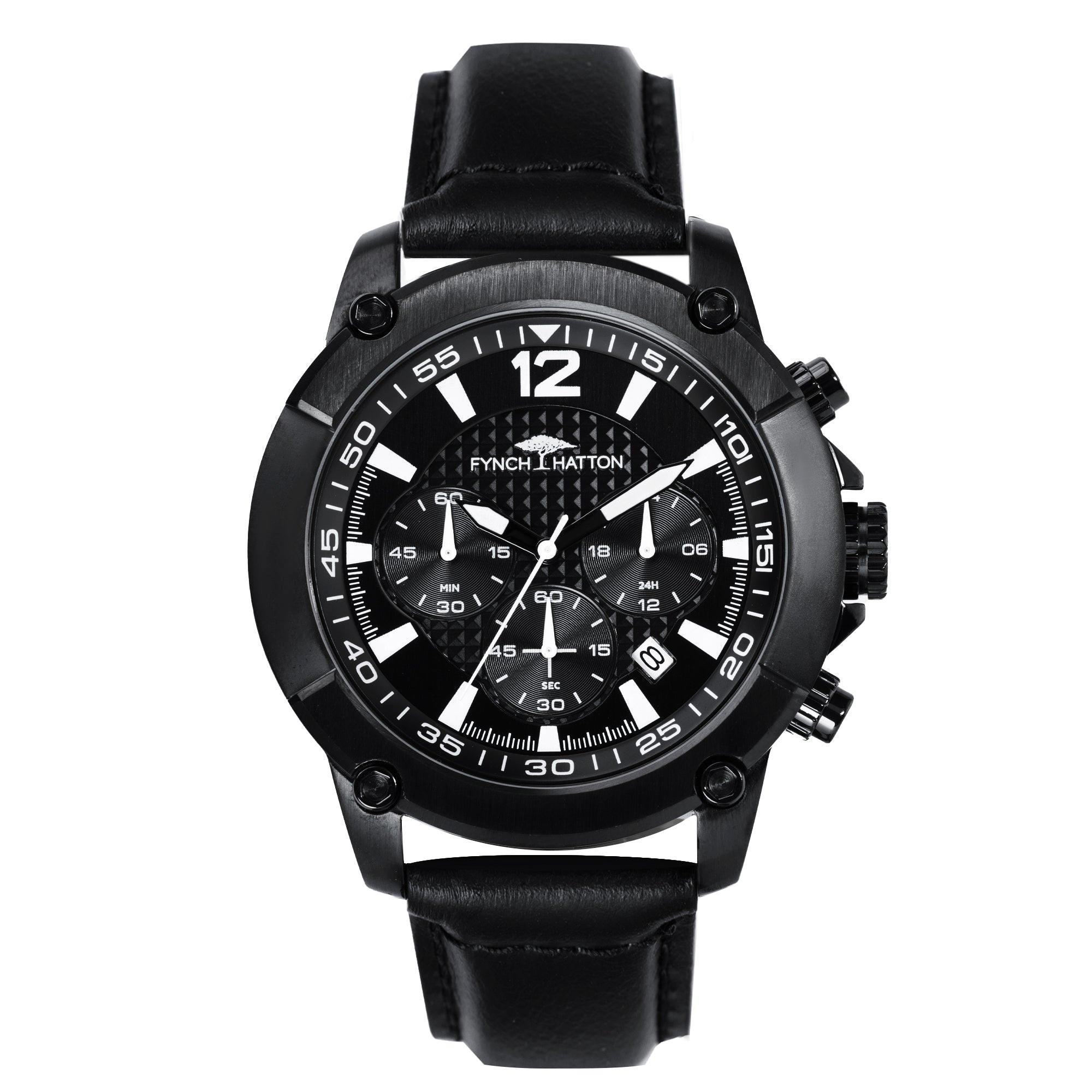 Fynch-Hatton Armbanduhr aus Edelstahl. Diese hochwertige Uhr von FYNCH-HATTON ist ein echter Eyecatcher am Handgelenk. Perfekt verarbeitet mit einem hochwertigen Lederarmband und gebürstetem, aufgesetztem Topring ist das Modell ein stylischer Hingucker, der perfekt zu den verschiedensten Looks kombiniert werden kann. Dank zuverlässigem Chronographenwerk mit Stoppfunktion und einer Wasserdichtigkeit von bis zu 5 ATM bleiben bei dem Modell keine Wünsche offen.