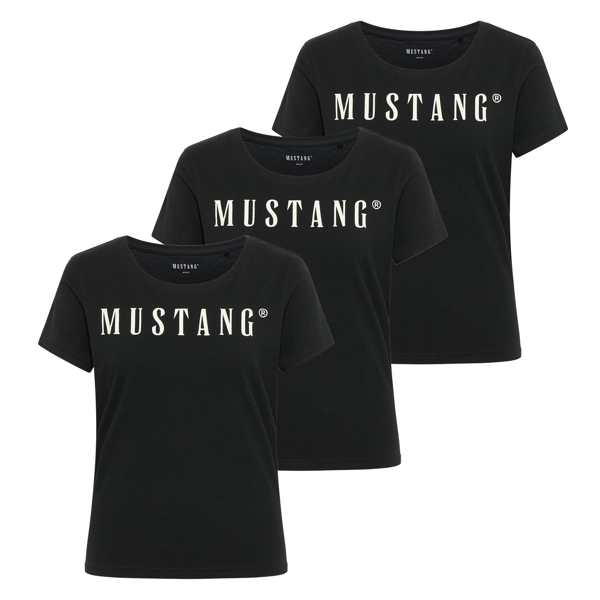 Hochwertiges T-Shirt von der Marke Mustang 3er Pack. Mit großem Logo-Aufdruck. Mit weicher Baumwolle für angenehmes Tragegefühl. Regular Fit Passform.