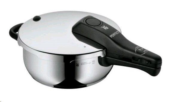 Er ist der Klassiker unter den Schnellkochtöpfen: der WMF Perfect. Seit vielen Jahren verteidigt er souverän seinen Stammplatz im WMF Sortiment und das nicht ohne Grund. Sein klassisches Design ist zeitlos seine Funktionalität stets an die aktuelle Technik angepasst. Wie alle anderen Schnelltöpfe aus dem Hause WMF besteht auch er aus Cromargan und ist somit rostfrei pflegeleicht und unverwüstlich. Sein grosses Kochsignal ermöglicht eine einfache Bedienung seine Innenskalierung das genaue Befüllen und der abnehmbare Griff leichtes Reinigen. Damit nicht genug: Dank seines TransTherm Allherdbodens eignet sich der WMF Perfect Dampftopf für alle Herdarten inklusive Induktion. Von der Serie WMF Perfect sind Schnelltöpfe in fünf verschiedenen Grössen und als zweiteiliges Set erhältlich.