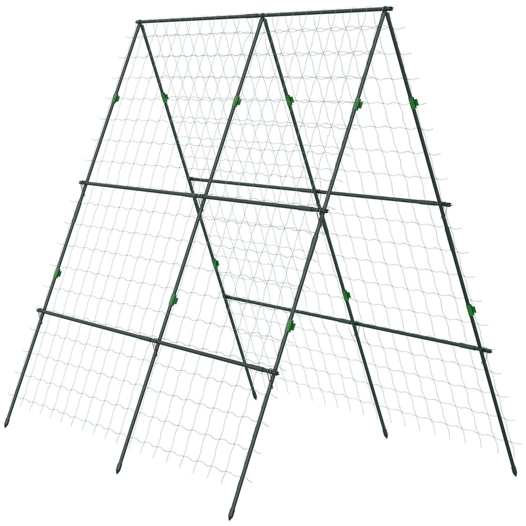 Dieses Rankgitter von Outsunny besitzt ein praktisches Pflanzenschutznetz und gibt Ihren Pflanzen den Halt, den sie für ein gesundes Wachstum brauchen. Jede der beiden Gitterwände bildet eine wunderbare Kletterfläche für Rankgewächse. Der robuste, pulverbeschichtete Stahlrahmen ist ideal für den Einsatz im Freien geeignet. Inmitten des Grüns fällt das Spalier dank der grünen Farbe überhaupt nicht auf. Es kann im Garten verwendet oder mit einem Hochbeet kombiniert werden.