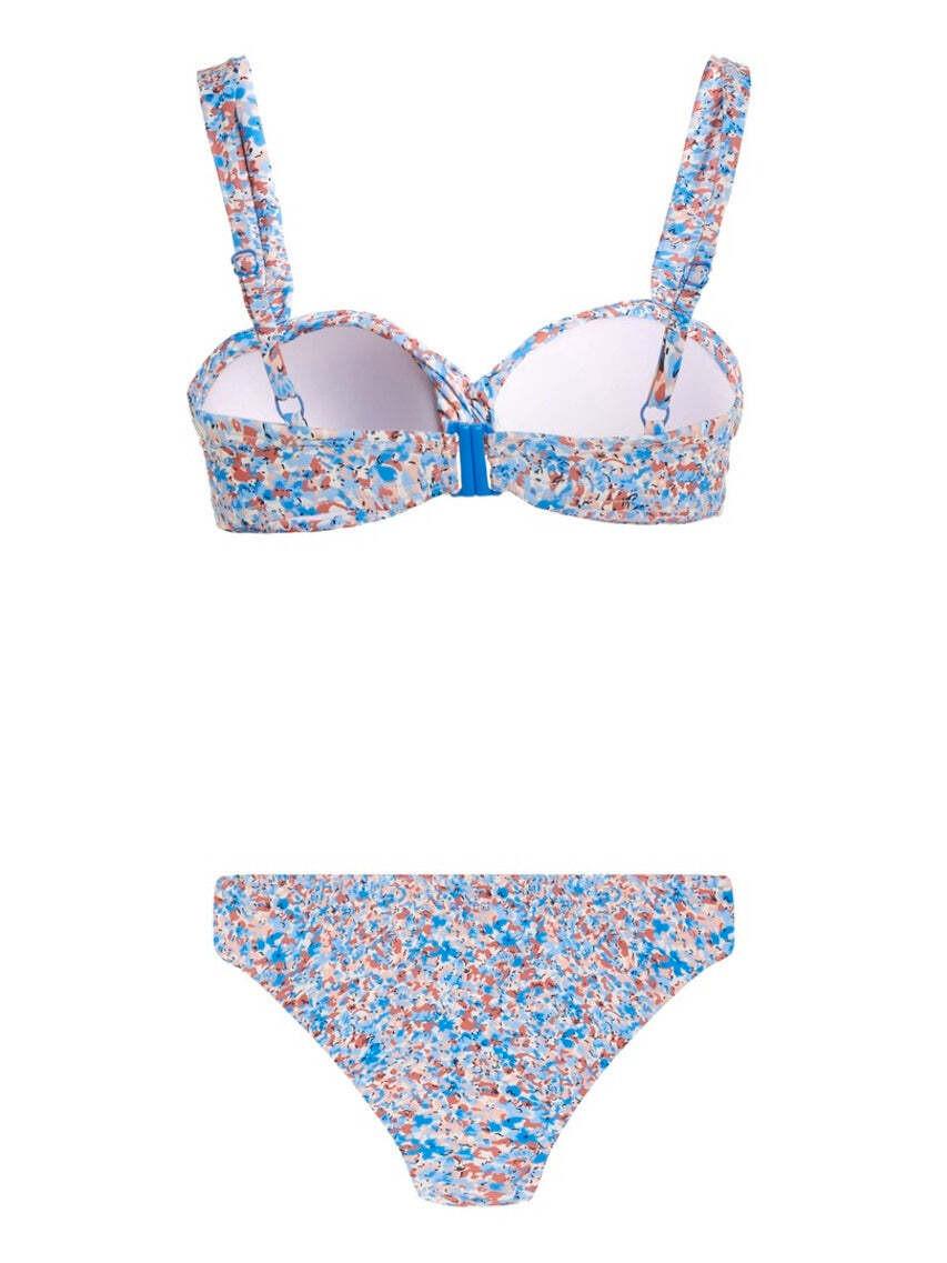Der PRTSTRAIT Bikini präsentiert sich mit einem wunderbar blumigen Design. Der Stoff des Bandeau-Bikini-Oberteils ist vorne gedreht, was für einen spielerischen Effekt sorgt. Das Oberteil wird mit einer Schnalle geschlossen und hat feste, vorgeformte Pads, die zusätzlichen Komfort und Halt bieten. Die passende Bikinihose hat eine normale Passform und Taille.