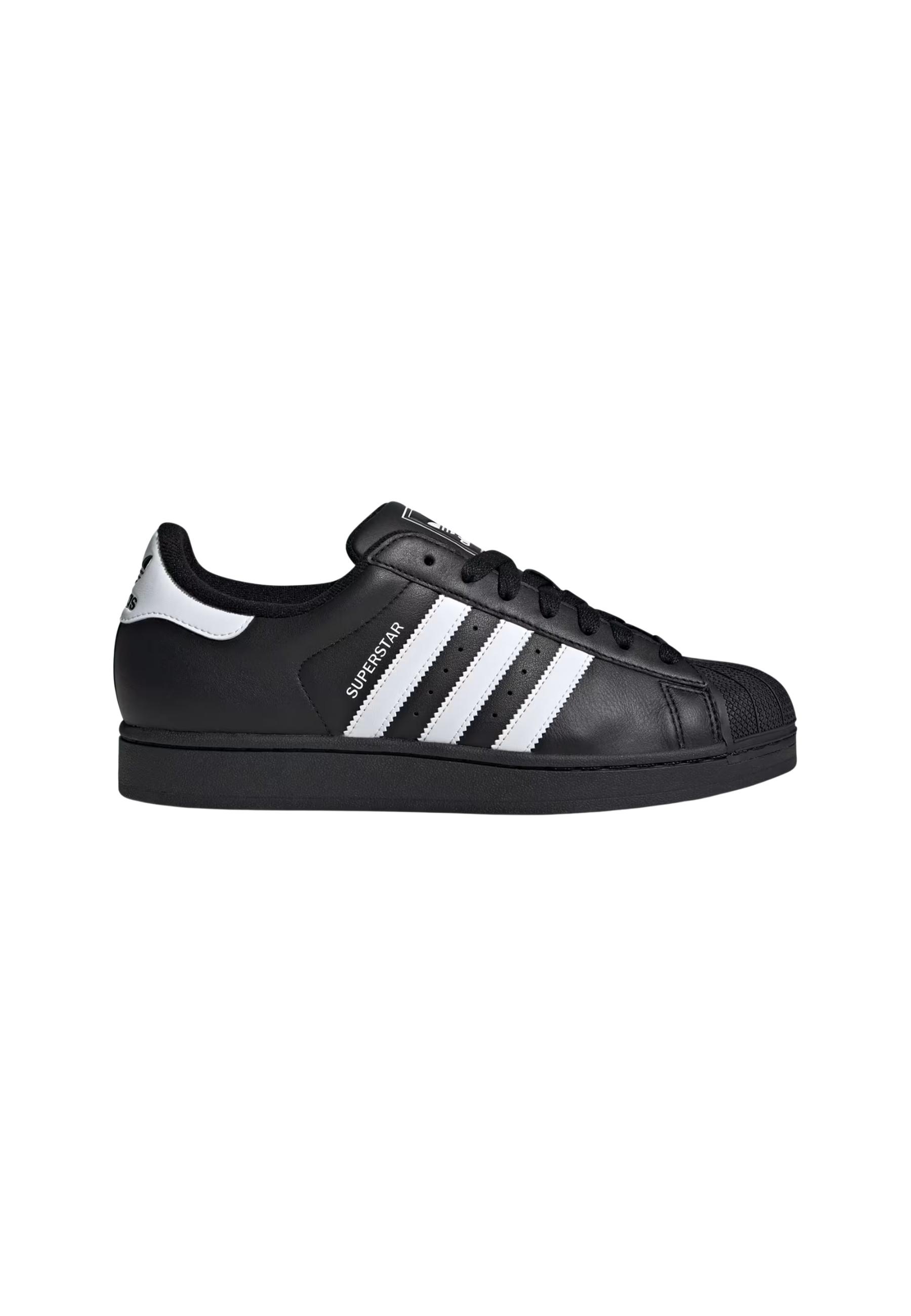 Der adidas Originals SUPERSTAR II ist ein ikonischer Schuh, der durchsetzungsstarken Stil und alltäglichen Komfort vereint. Entworfen mit einem Leder und synthetischem Obermaterial, verfügt dieser schwarze Sneaker über drei weiße Streifen an der Seite, ein ikonisches Detail, das seinen trendigen Look verstärkt. Das Obermaterial ist mit synthetischem und textilem Material für ein weiches und atmungsaktives Tragegefühl gefüttert. Die abnehmbare Innensohle bietet eine individuelle Passform, während die Gummiaußensohle für diskrete Stabilität und erhöhte Haltbarkeit sorgt. Die Spitze des Schuhs zeichnet sich durch eine strukturierte Textur aus, die zu seinem unverwechselbaren Design beiträgt. Das adidas Logo in weiß ist über der Zunge angebracht und der Name "SUPERSTAR" ist vertikal auf der Hinterbrust eingraviert. Erhältlich in einer Reihe von schwarzen Farben ist dieser Schuh sowohl für Spaziergänge als auch für Freizeitausflüge geeignet und etabliert sich als Must-have in urbaner Art und Weise. Sein zeitloser Stil sorgt für ein Outfit und bietet gleichzeitig optimale Vielseitigkeit für alle Alltagsanwendungen.