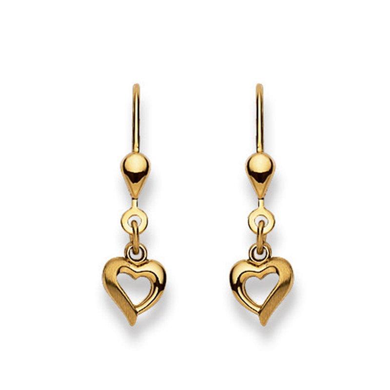 MUAU Schmuck Ohrhänger mit Patentbrisuren Herz Gelbgold 750, 25x7mm