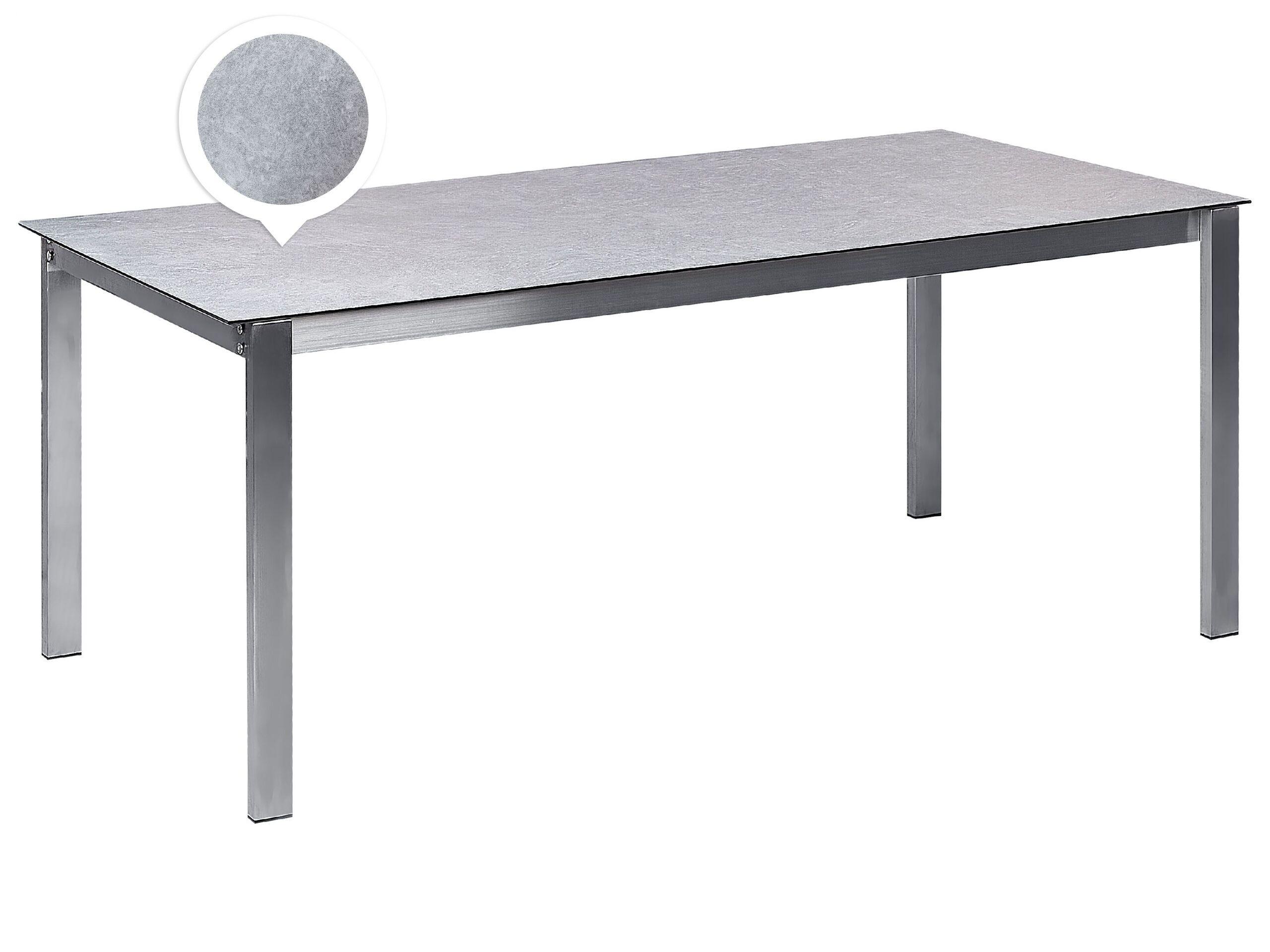 Moderner Keramik-Glas-Gartentisch mit Edelstahlgestell. Dieser unverwechselbare Tisch wird zum Hauptelement jeder Garten- und Inneneinrichtung! Die grosse, edle rechteckige Platte bezaubert mit ihrer Fertigung aus robustem Sicherheitsglas, das mit einer farbechten, UV-Beständigen, und widerstandsfähigen Keramikoberfläche überzogen wurde. Keramik ist ein mineralischer Werkstoff und dadurch auch wasserabweisend, besonders reinigungs- und pflegeleicht. Dank dem hochwertigen, robusten Edelstahlgestell erhält das Modell eine bemerkenswerte Standfestigkeit, so werden gemeinsame Treffen unter Freunden und Bekannten zum besonderen Genuss.