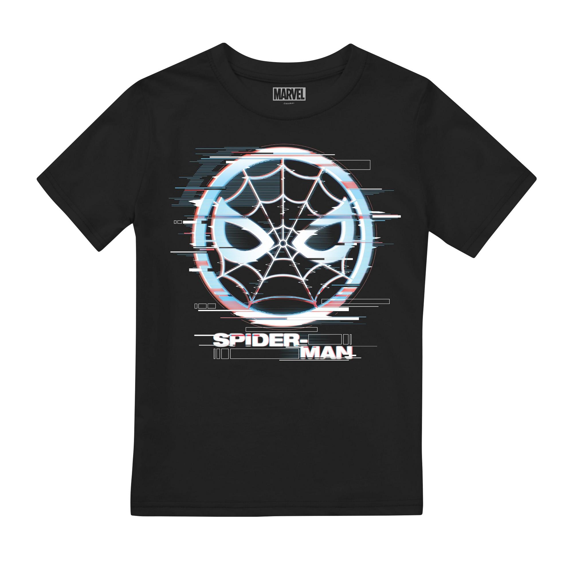 100% Baumwolle. Design: Glitch, Logo, bedruckt. 100% offiziell lizenziert. Rundhalsausschnitt. Kurzärmlig. Figur: "Spider-Man".