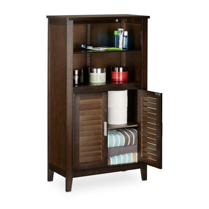 Der braune Bambus-Badezimmerschrank bietet mit vier geräumigen Ablagen viel Stauraum – ideal für Handtücher, Kosmetikartikel und mehr. Die feuchtigkeitsbeständige Bambuskonstruktion eignet sich sowohl für Badezimmer als auch für Küchen.