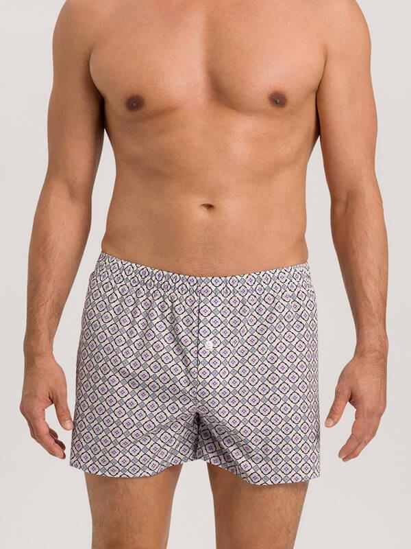 Diese gewebten Boxershorts sind ein vielseitiger Begleiter, ideal zum Schlafen, als Loungewear oder als Unterwäsche. Sie verfügen über einen stoffbezogenen Elastbund und einen Eingriff mit Knopfleiste.