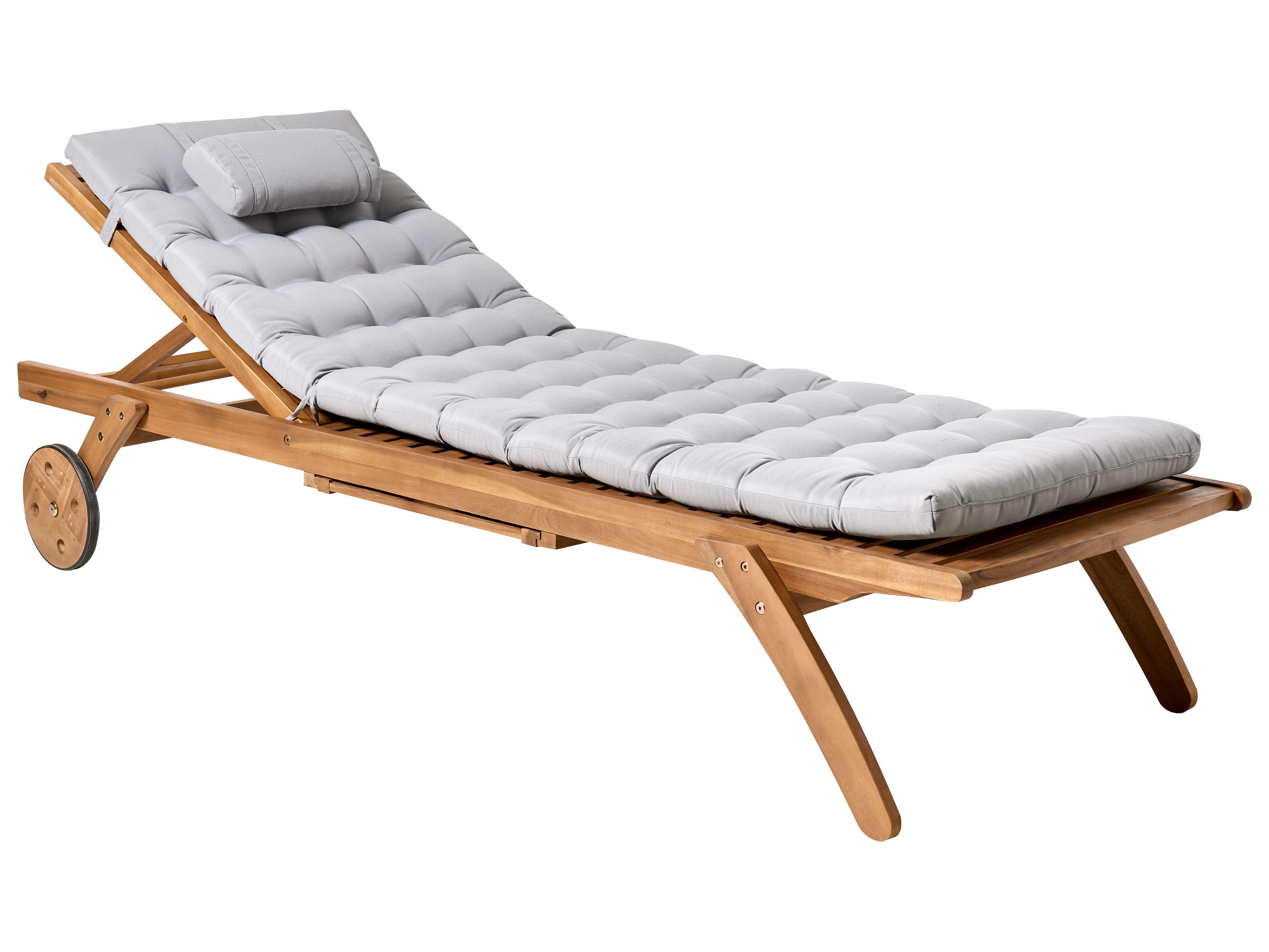 Beliani Sonnenliege mit Kissen aus Akazienholz CESANA PREMIUM