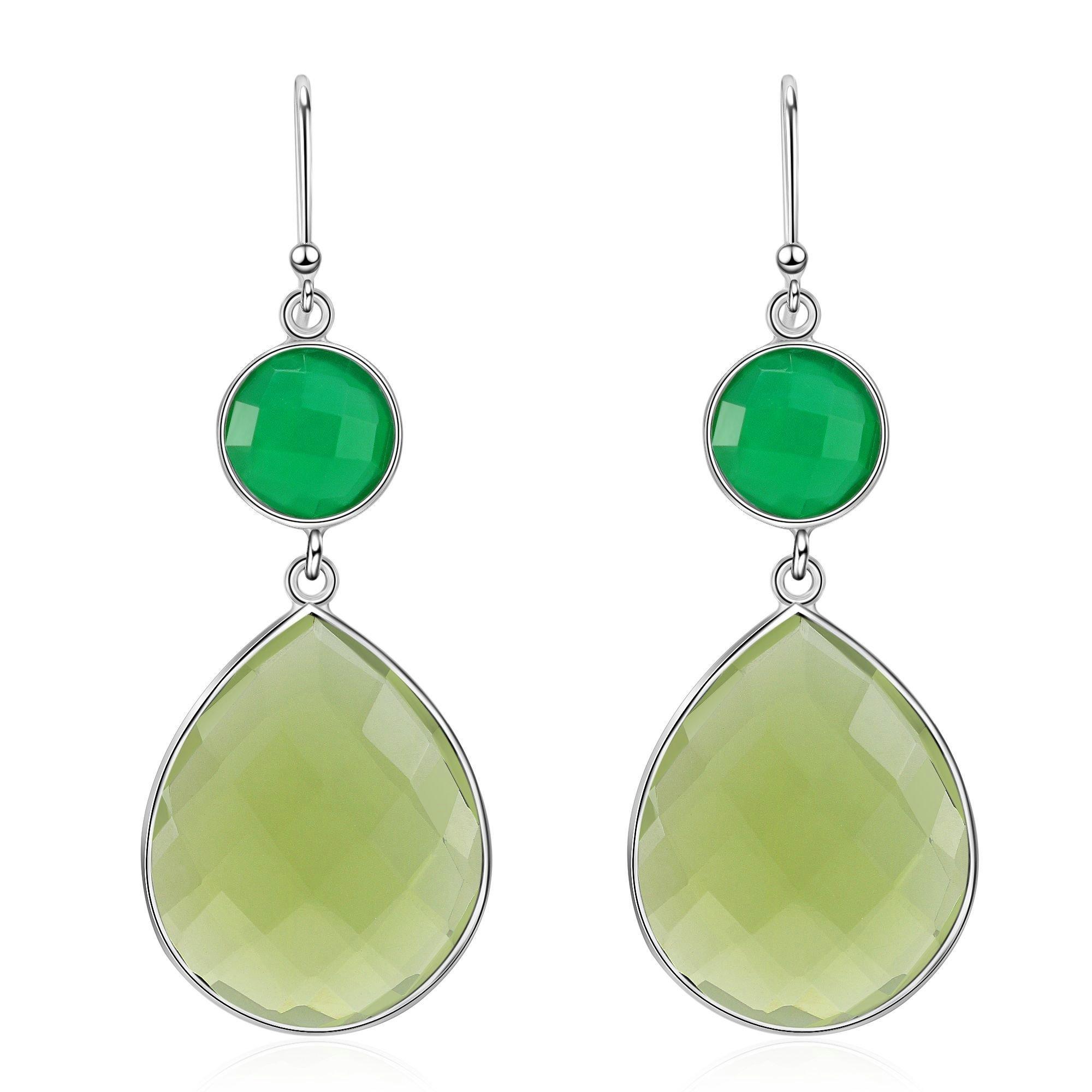 Da die Ohrringe zu 100 % in Handarbeit gefertigt wurden und es sich um hochwertige Steine handelt, ist jedes Schmuckstück ein Unikat, das leicht von den Fotos abweichen kann. Die Ohrringe aus hochwertigem 925 Sterling Silber sind dank der zwei untereinander hängenden Edelsteine in AAA-Qualität ein außergewöhnliches Accessoire. Jede Fassung und jeder Stein wurden von Hand durch unsere Kunsthandwerker und Designer gestaltet, was jedes Stück zu einem Unikat macht. Das schöne Design mit dem runden grünen Onyx und dem grünen Amethyst in Tropfenform machen die Ohrringe zu einem ganz besonderen Eyecatcher und perfektionieren jedes Outfit. Das hübsche Schmucksäckchen aus 100 % Baumwolle mit weißen Perlen verleiht dem Echtschmuck in der exklusiven Box zusätzlich einen luxuriösen Look - einzeln oder im Set ideal als Geschenk.