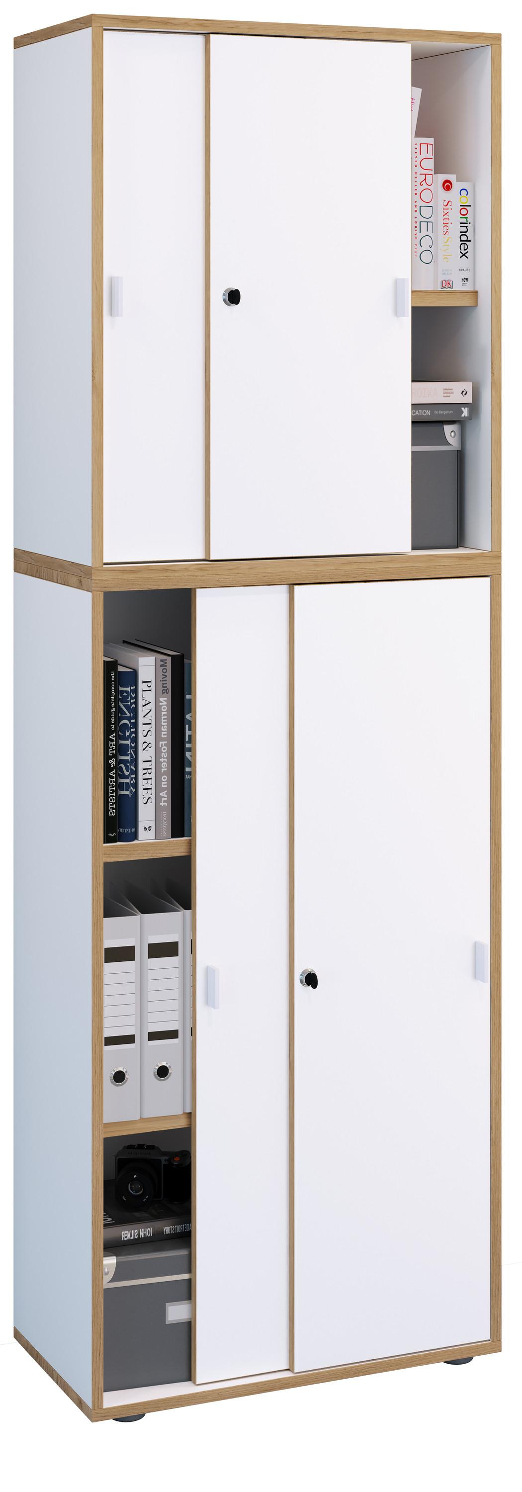 VCM, Holz Büroschrank Ordner Aktenschrank Büromöbel Schrank Salia 5-fach Schiebetüren