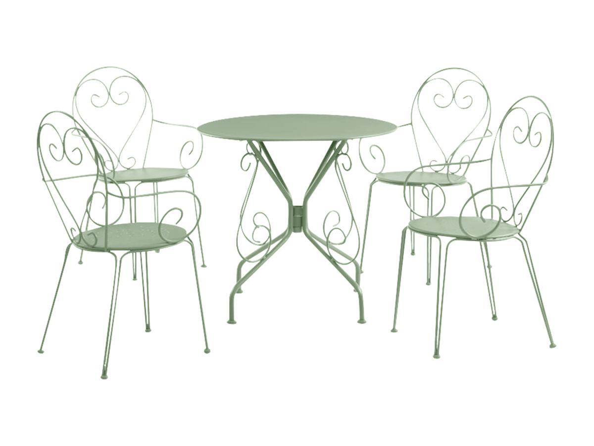 Vente-unique Garten-Essgruppe: Tisch + 4 stapelbare Sessel - Metall in Eisenoptik - Grün - GUERMANTES von MYLIA