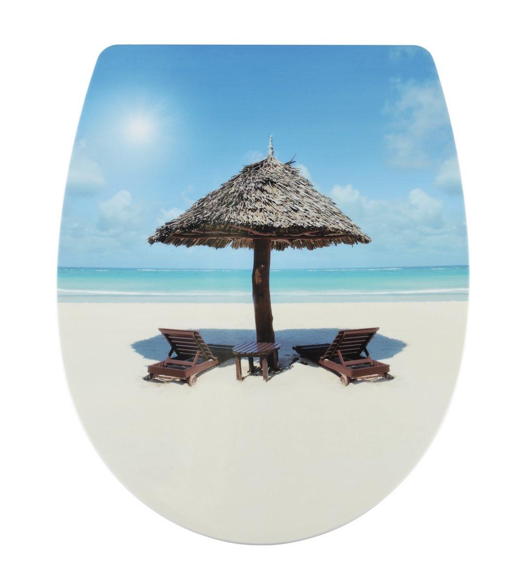 diaqua® WC-Sitz Arles Slow Down Beachlife 41.5-45.5 X 36.3 CM - WC-Sitz mit Absenkautomatik für sanftes Schliessen von Deckel und Brille. Rasche Montage durch verstellbare und einfache Befestigung, aus pflegeleichtem und langlebigem Polypropylen, universelle Passform für alle handelsüblichen WC-Anlagen, inkl. Befestigungsmaterial.