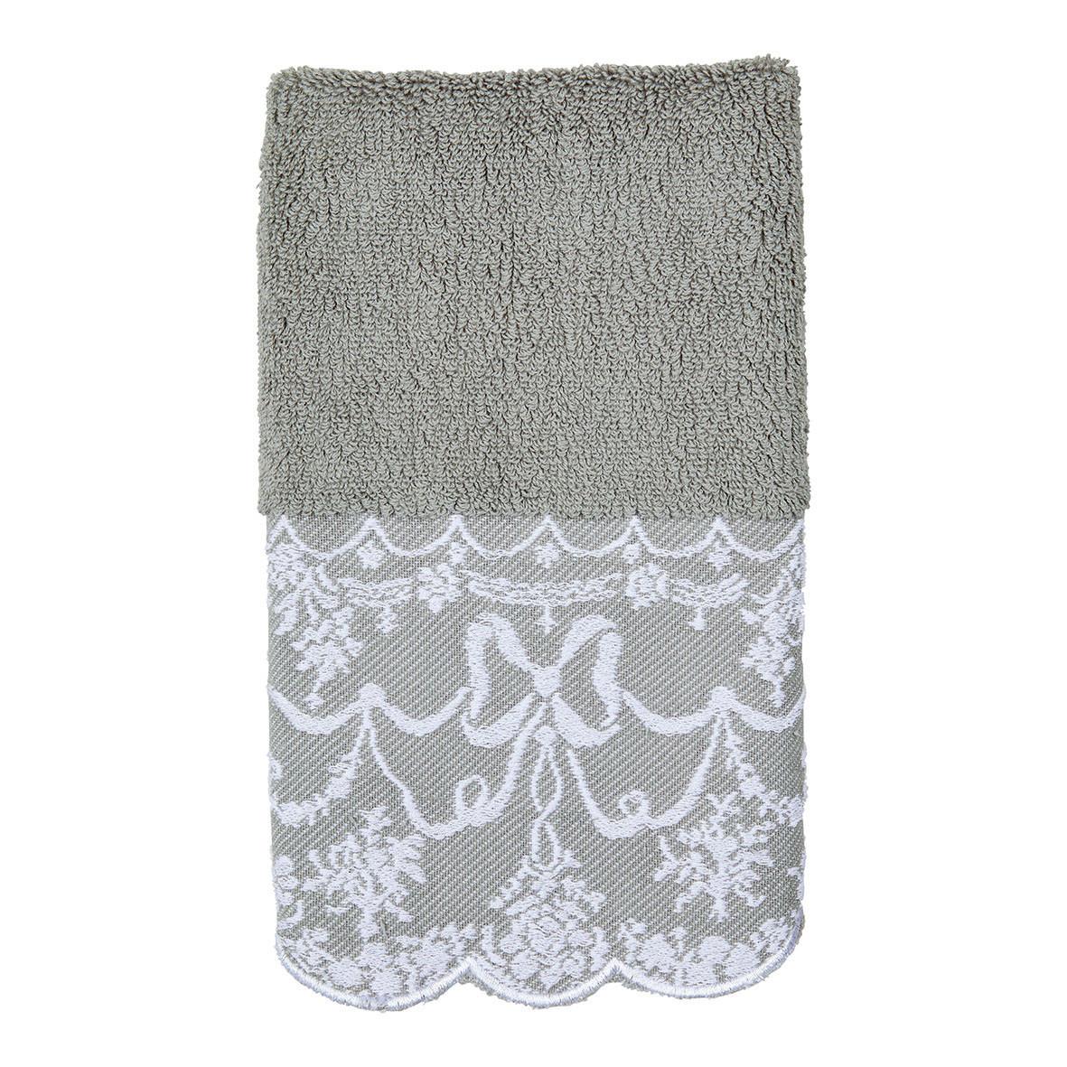 Gönnen Sie sich den ultimativen Luxus mit unserem Gästehandtuch Dentelle Aquarelle. Dieses elegante graue Handtuch wurde mit Präzision gefertigt und verfügt über atemberaubende Dentelle-Muster, die jedem Badezimmer einen Hauch von Raffinesse verleihen.