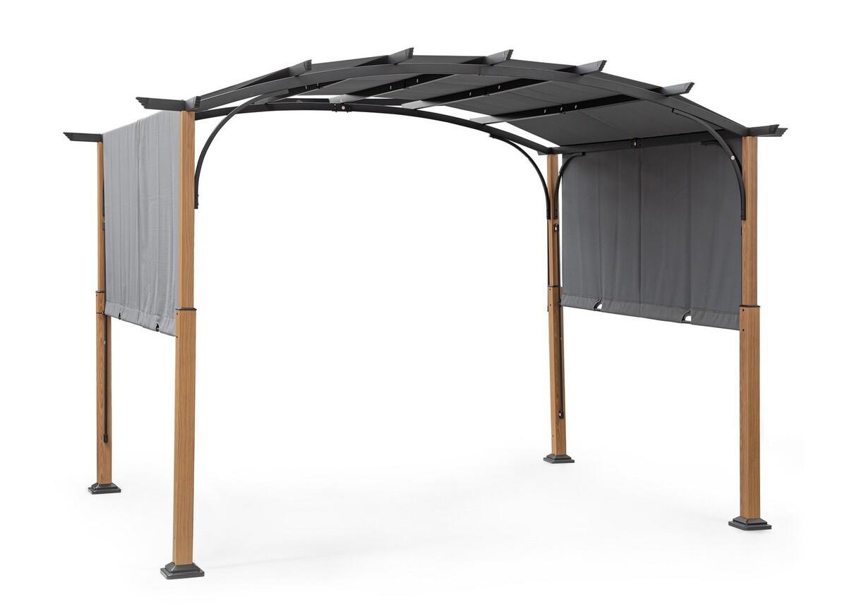 Der Pavillon Taormina ist die perfekte Ergänzung für jeden Garten oder jede Terrasse, die einen Hauch von Eleganz und Funktionalität benötigt. Dieses stilvolle Modell kombiniert moderne Farben wie Grau, Holzbraun und Schwarz mit hochwertigen Materialien wie Stahl, Polyester und Kunststoff. Die robuste Stahlstruktur ist durch Phosphatierung und eine Polyester-Pulverbeschichtung optimal gegen Witterungseinflüsse geschützt, während die Holzoptik der Trägerstangen natürliche Akzente setzt. Die Polyesterplane mit Riplock-Technologie ist reissfest und manuell verschiebbar, sodass Sie je nach Wetterlage flexibel Schatten oder Sonne geniessen können. Der Pavillon Taormina ist nicht nur ein Schutz vor Sonne und Regen, sondern auch ein stilvolles Designelement, das Ihren Aussenbereich aufwertet.