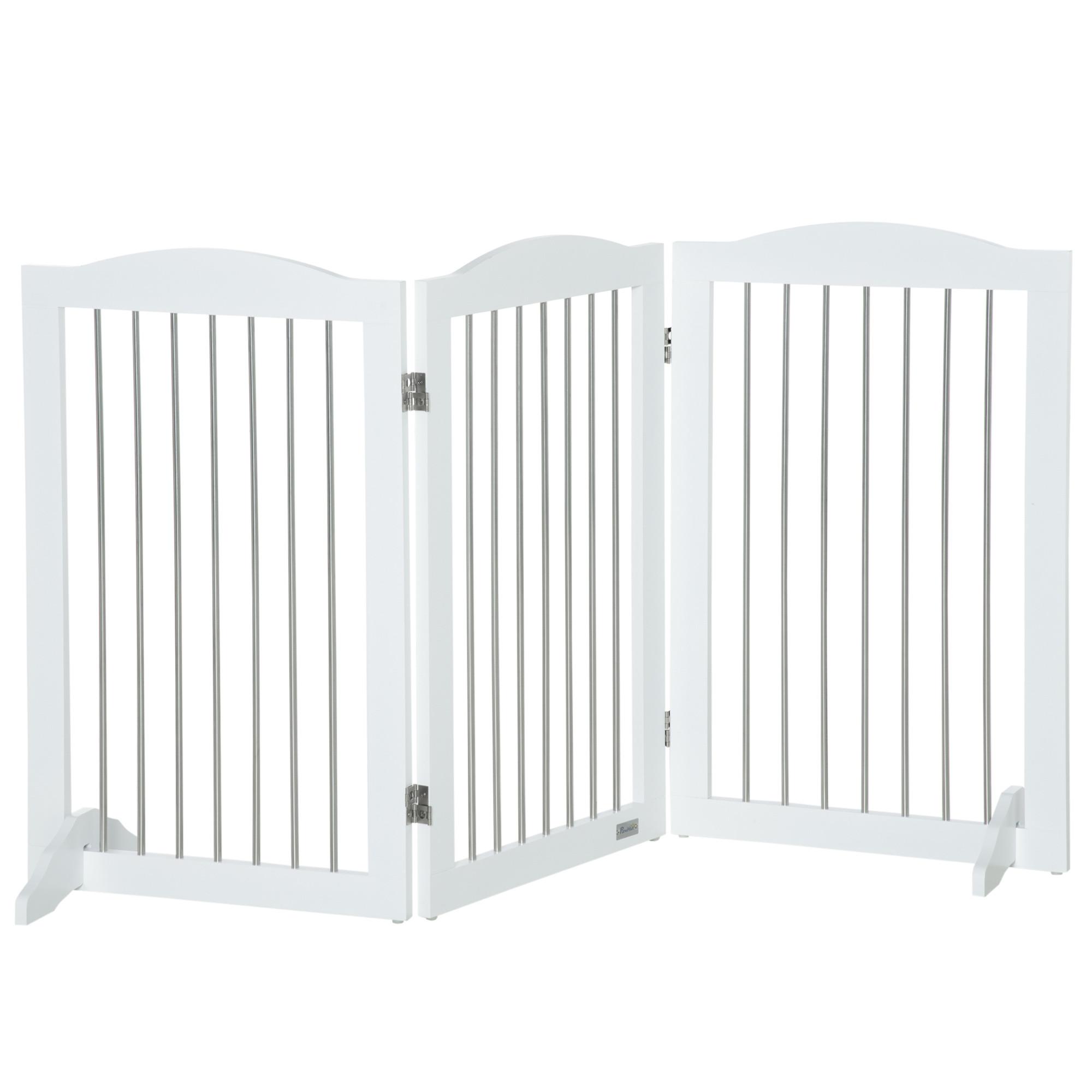 Müssen Sie Ihre Hunde von bestimmten Bereichen fernhalten? Dieses praktische PawHut-Türgitter ist die Lösung! Mit seinen drei Gitterelementen und starken Scharnieren kann es in verschiedenen Formen gebracht werden - ideal für Türen, Flure, Treppen u. v. m. Der robuste Rahmen des Absperrgitters sorgt für Stabilität, während breite Stützfüße höchste Standfestigkeit bieten. Dieses schnell aufzubauende Hundegitter hilft Ihnen, Ihr Heim tiergerecht zu machen und Ihre Vierbeiner besser zu schützen.