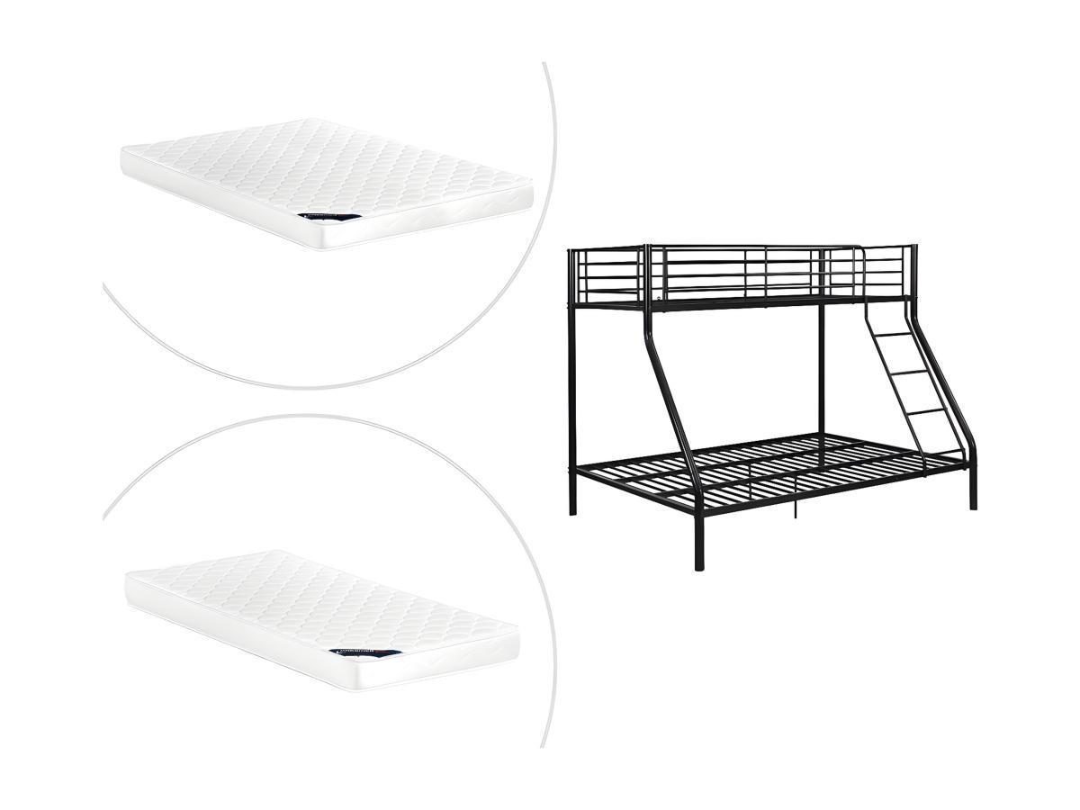 Vente-unique, Etagenbett &Stahl + Matratze ELEVATIO IV