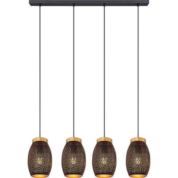 Hängeleuchte Metall goldfarben, Metall schwarz matt goldfarben, Schirm mit Dekorstanzungen, LxBxH:900x150x1200, exkl. 4xE27 40W 230V