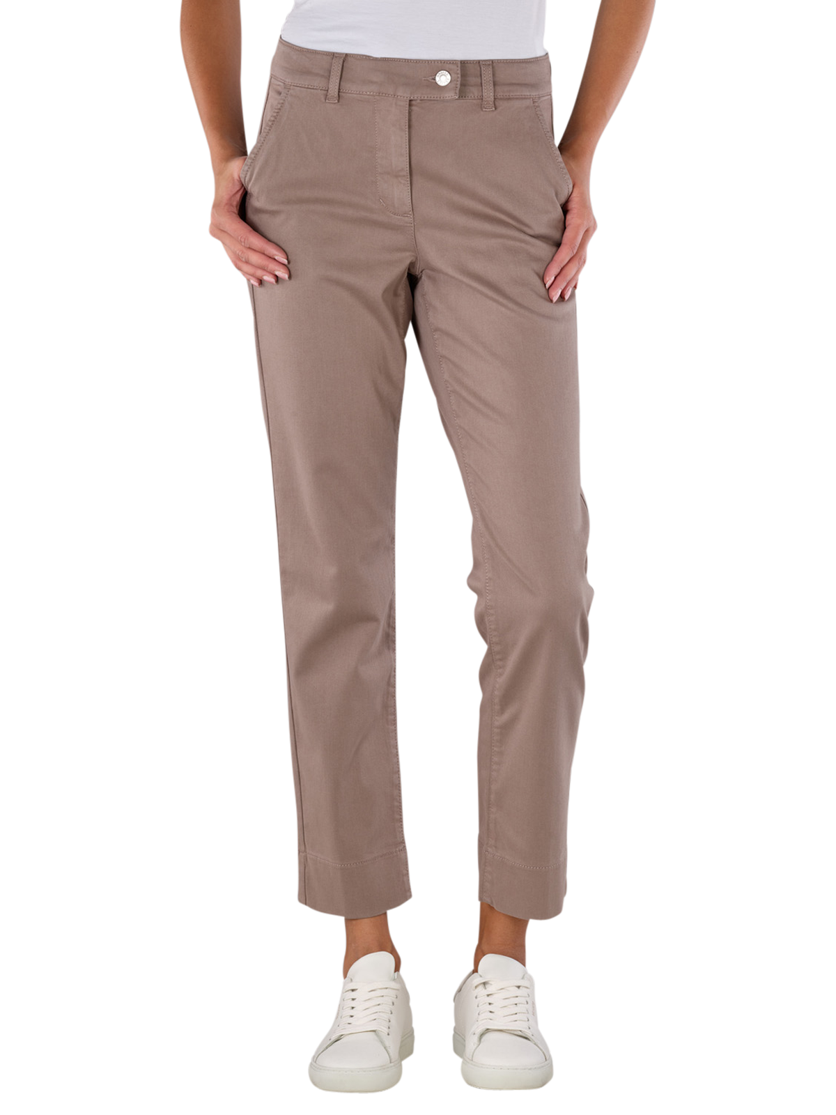Die Vera Chino Winter Cotton Truffle ist eine stilvolle Chino-Hose für Frauen in elegantem Braun. Mit ihrem geraden Beinausschnitt und der mittleren Bundhöhe bietet sie einen klassischen Straight Fit. Der Stoff vereint Lyocell, Modal und Baumwolle, was zusammen mit einem Stretchanteil für komfortablen Sitz sorgt. Die Hose hat eine Standarddicke und wird bequem mit einem Reissverschluss geschlossen.