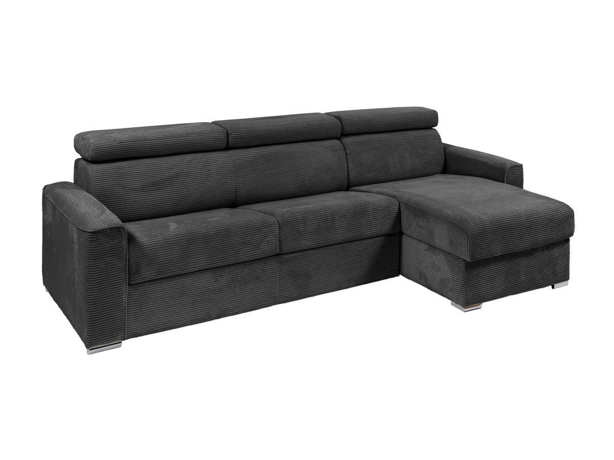 Vente-unique Ecksofa mit Matratze - Ecke wechselbar - Cord - Anthrazitgrau - Liegefläche 160 cm - Matratze 14 cm - VIZIR