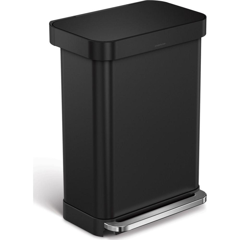 Fassungsvermögen: 55 l, Anzahl Behälter: 1, Detailfarbe: Schwarz matt, Form: Eckig, Material: EdelstahlMit einem Pedal ausgestattet55 l FassungsvermögenForm: Eckig1 BehälterAus EdelstahlIn der Farbe Schwarz mattLieferumfang:1x Treteimer1x Müllbeutel-Probepackung1x odorsorb Pod Starterpaket