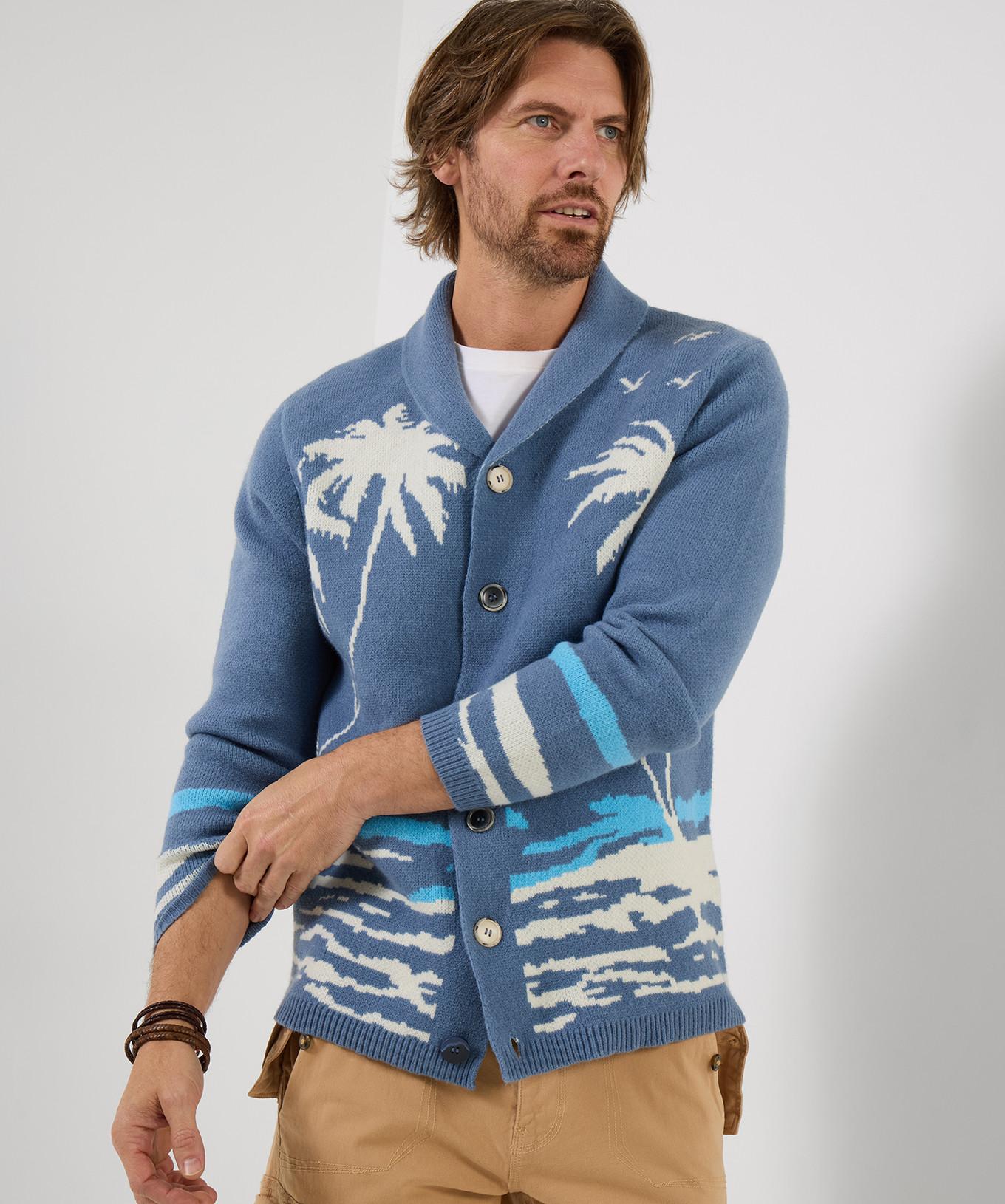 Joe Browns Strickjacke mit Schalkragen und Palmenmotiv