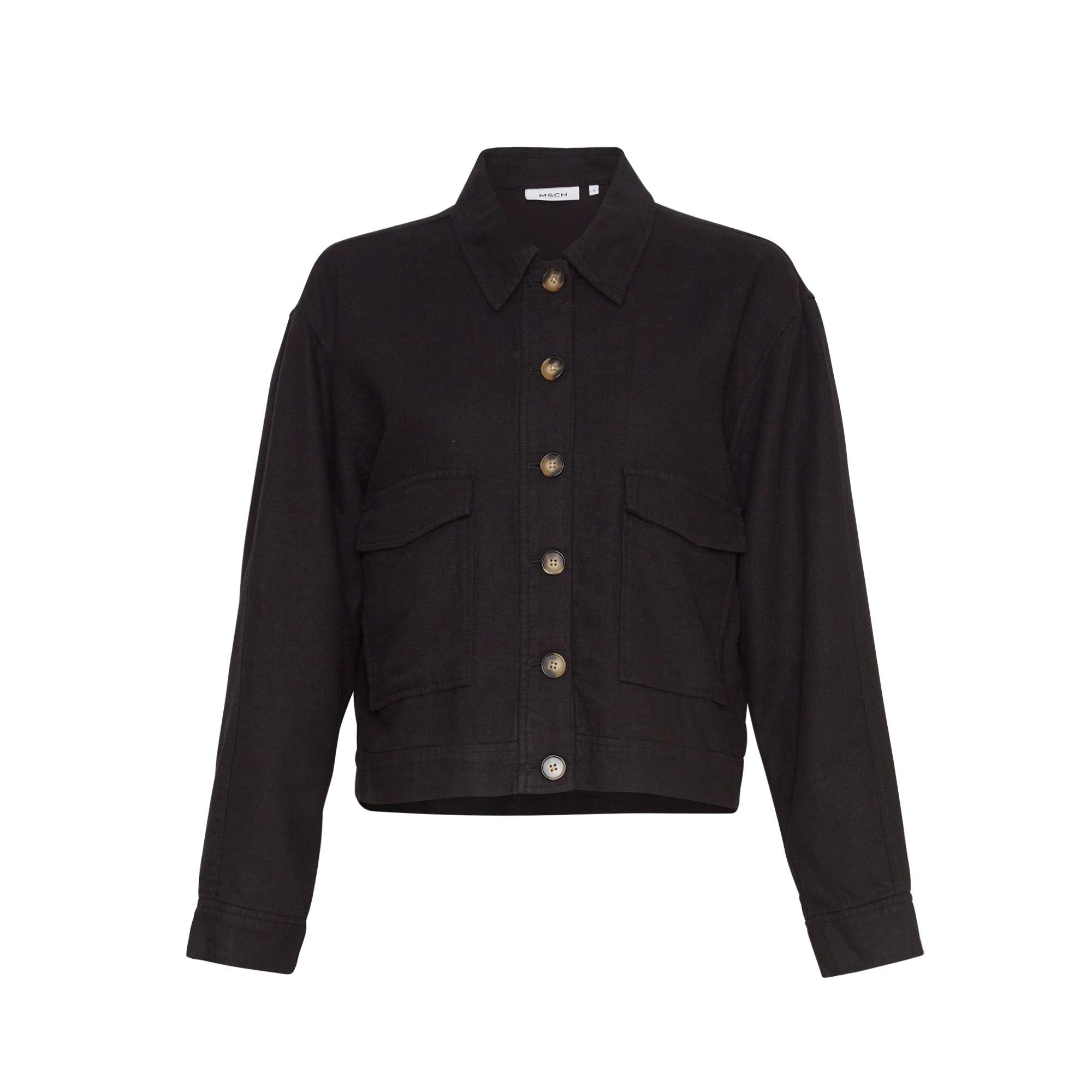 Die Jovene Ginia Jacke ist eine kurze Jacke aus Halbleinen mit Hemdkragen und Vordertaschen. Diese leichte Jacke lässt sich gut als Alternative zum Blazer oder als Outdoor-Jacke für wärmere Tage tragen. Sie passt gut zu Jeans oder einem Rock.