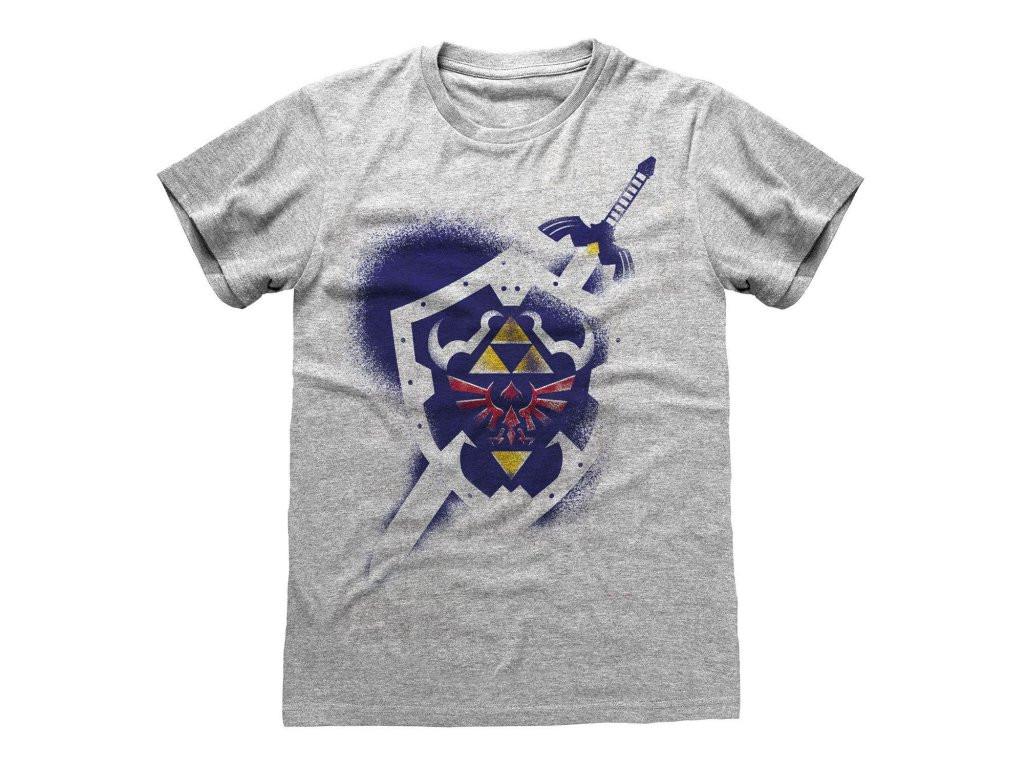 Dieses offiziell lizenzierte T-Shirt zeigt einen auffälligen Grafikdruck, inspiriert von der ikonischen Legend of Zelda-Reihe. Das Design präsentiert den Hylian-Schild und das Master-Schwert vor einem dynamischen, Used-Hintergrund. Es ist eine bequeme und stilvolle Wahl für Fans des klassischen Videospiels.
