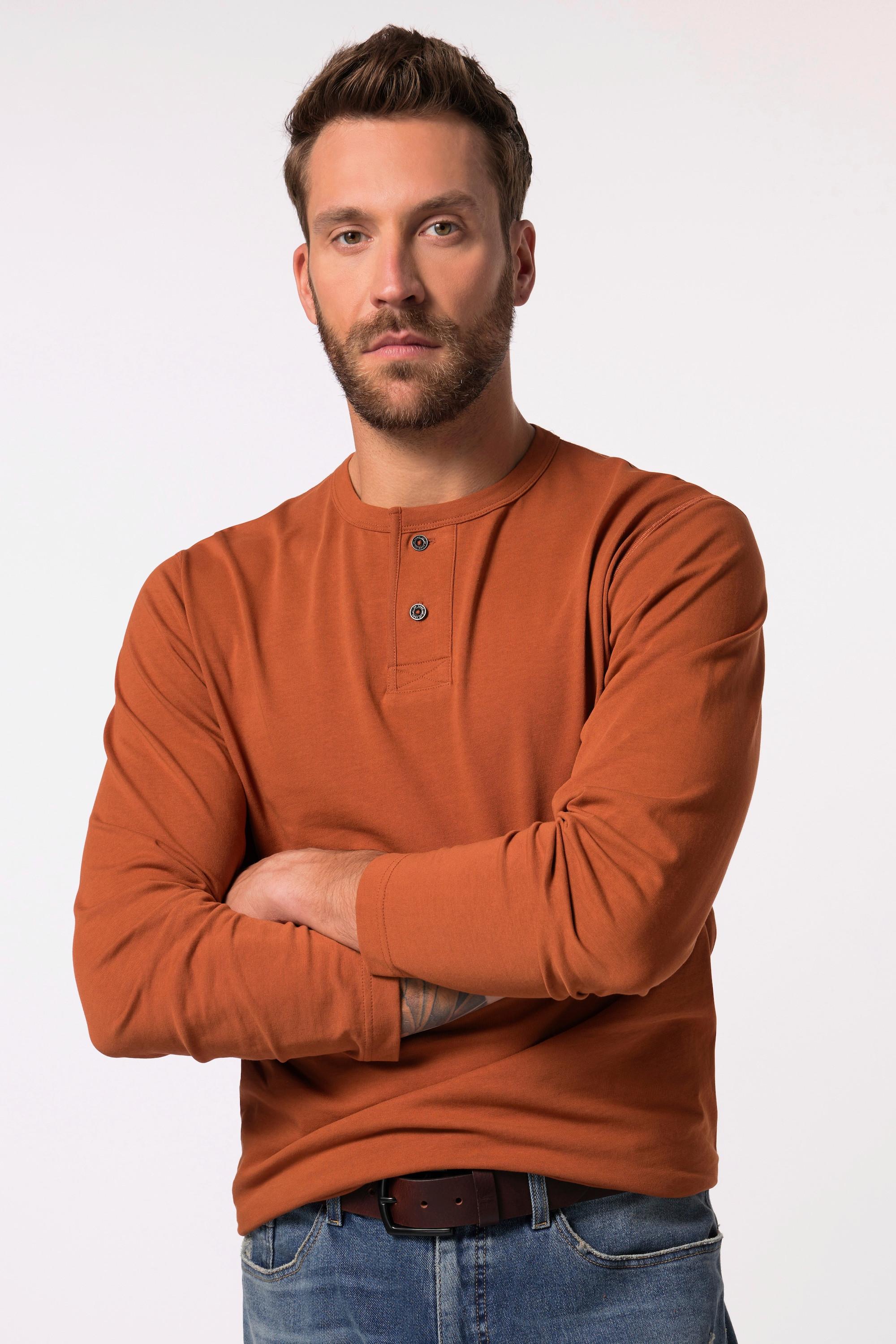 Dieses Langarm-Henley bietet einen zeitlosen Vintage-Look, perfekt für einen lässigen und dennoch raffinierten Stil. Das klassische Design verfügt über eine Knopfleiste am Ausschnitt, die einen Hauch von traditionellem Charme verleiht.
