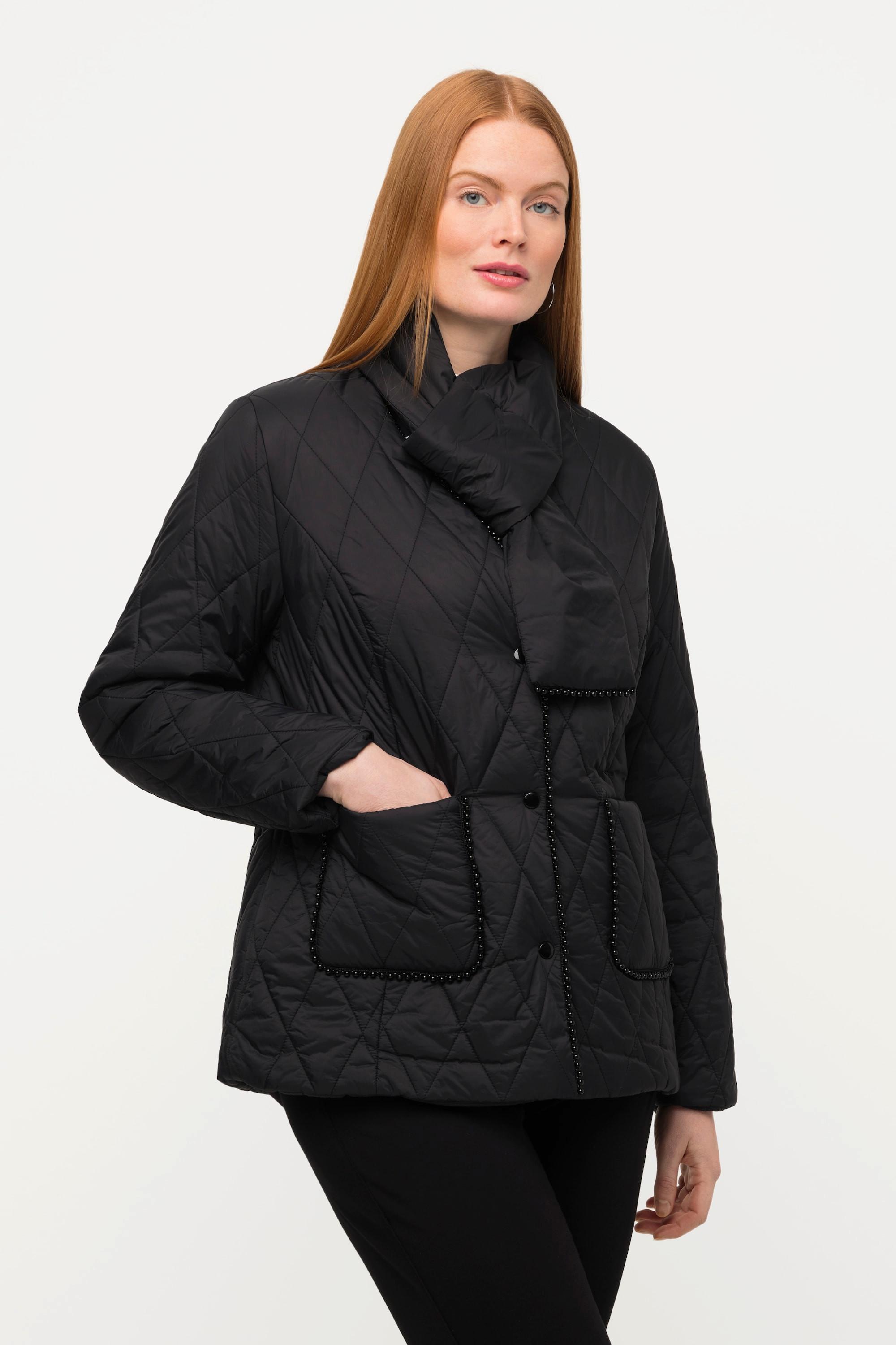Ulla Popken Steppjacke Schal Perlenbordüre V-Ausschnitt