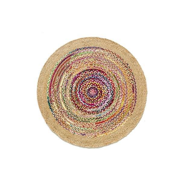 Der aus Jute und Recycling-Baumwolle handgeflochtene Teppich Jaco mit dem bunten Muster strahlt pure Fröhlichkeit aus.