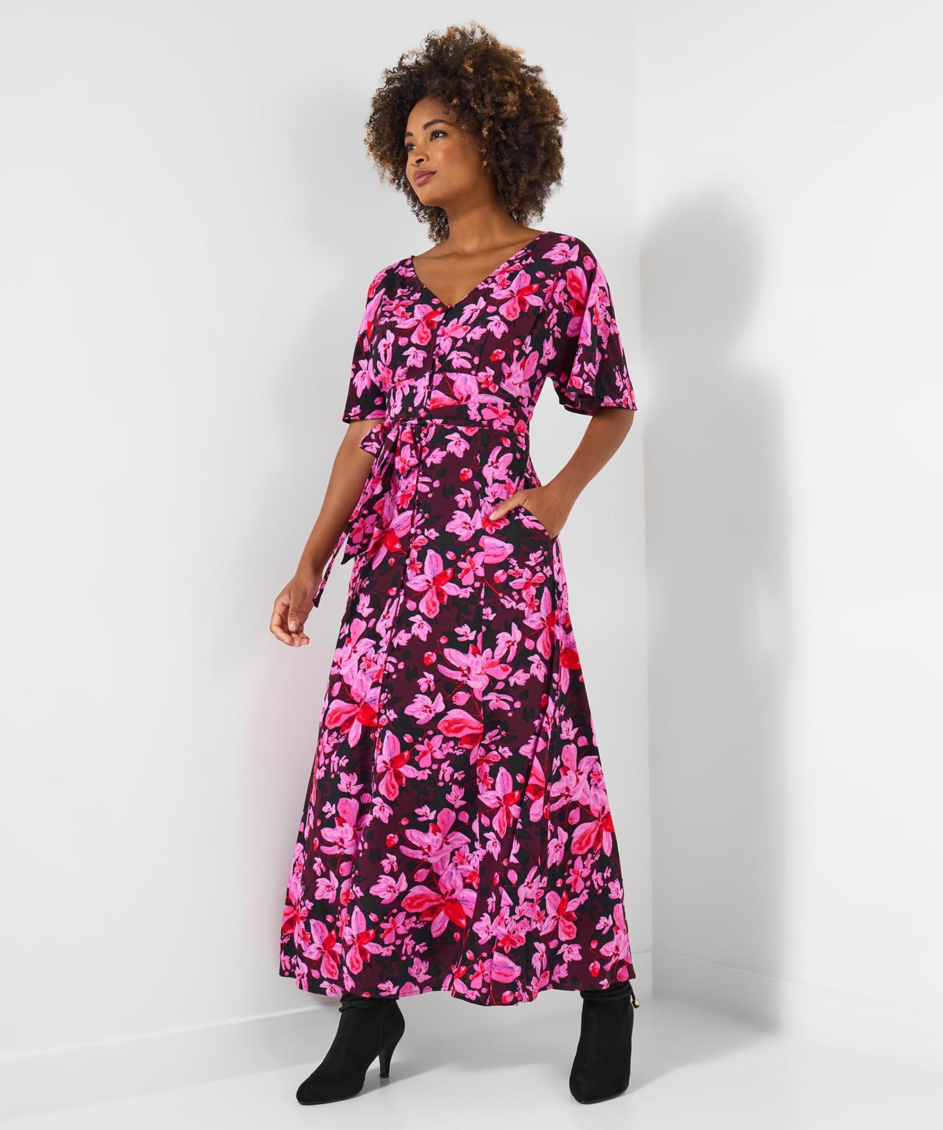 Joe Browns Geblümtes Maxikleid mit weiten Ärmeln und Knopfleiste