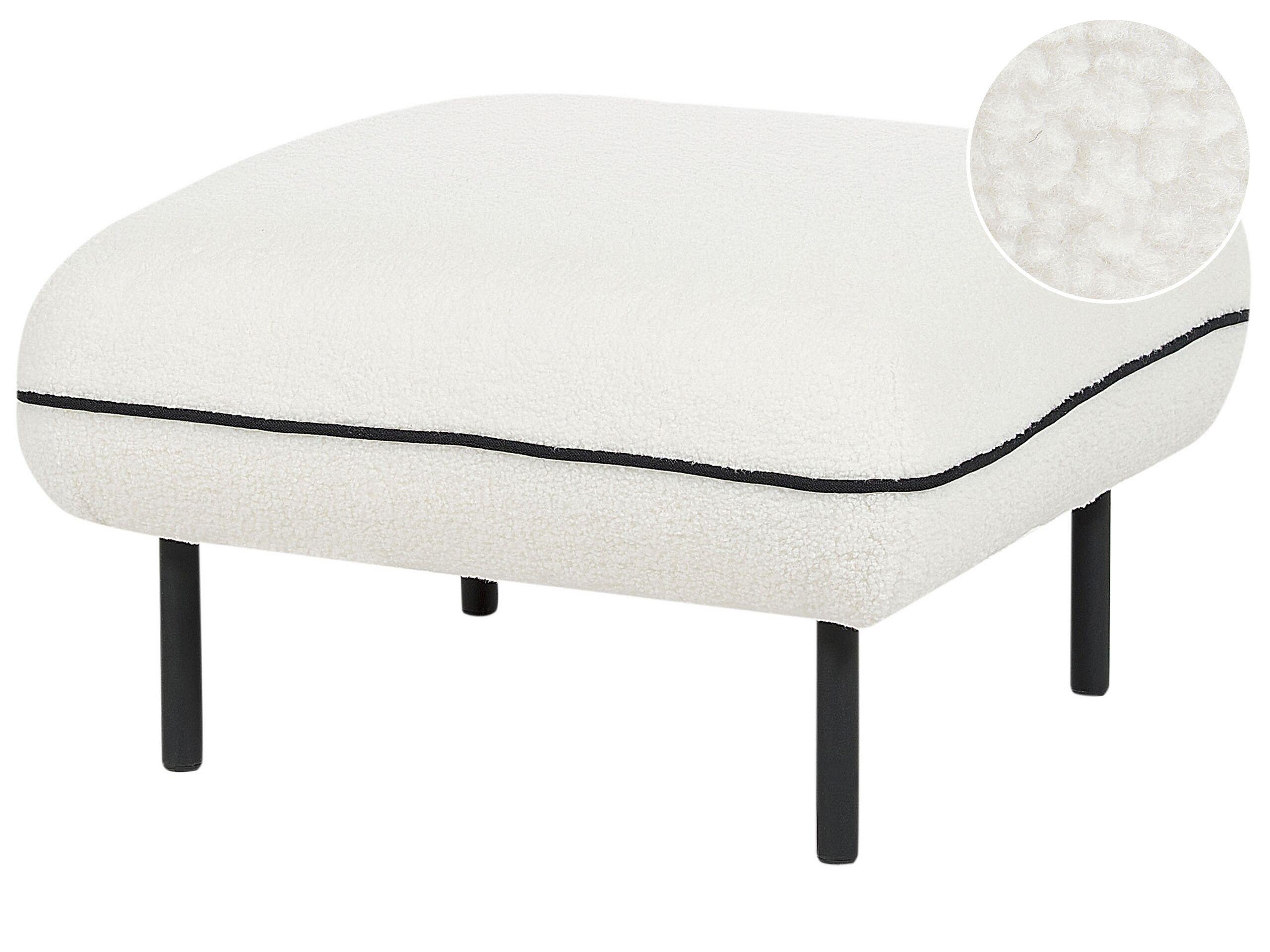 Praktischer Fusshocker mit schwarzen Metallbeinen und edlen Biesen. Mit diesem Meisterwerk an einem Polsterhocker ist Ihnen Stil, ein luxuriöser Look und Bequemlichkeit mehr als nur sicher. Das Modell bezaubert mit seinem angenehm weichen Bezug aus einem strukturierten und langlebigen Bouclé-Stoff. Die moderne Eleganz des Fusshockers wird durch die schwarzen Paspeln, welche die gesamte Formschönheit des Hockers nachzeichnen, und die robusten, passenden Metallbeine noch verstärkt. Dabei sichern die hohen Füsse nicht nur einen stabilen Stand, sondern sorgen auch für eine bequeme Höhe. Alle diese optischen und funktionalen Highlights sowie die dicke Polsterung verwandeln Ihr Wohnzimmer in einen gemütlichen Rückzugsort, der perfekt für Sie, Ihre Familie und Gäste ist.