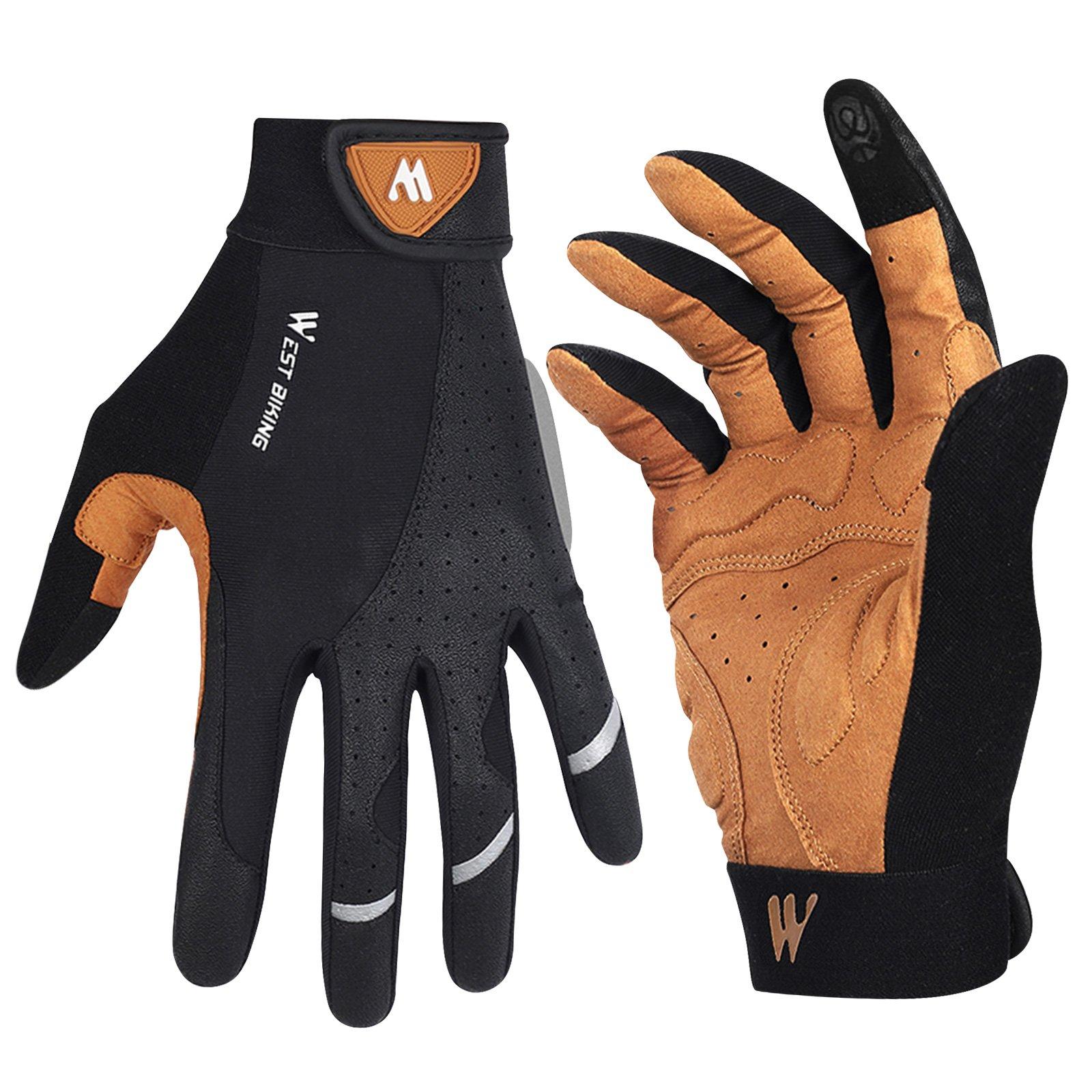 Touchscreen Sporthandschuhe aus Kunstleder, West Biking. Einfache und präzise Steuerung durch die Finger: Daumen und Zeigefinger. Rutschfeste Handfläche. Mini-Lochungen. Klettverschluss am Handgelenk. Reflektierende Streifen. Größe XS für 16cm Handumfang