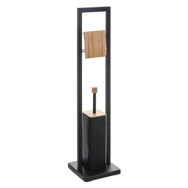 Bringen Sie Ordnung im Badezimmer mit einer Kombination aus Toilettenpapierhalter und Toilettenbürste. Das stilvolle Design aus schwarzem Metall mit Details aus Bambus sieht in den meisten Häusern und Innenräumen großartig aus.