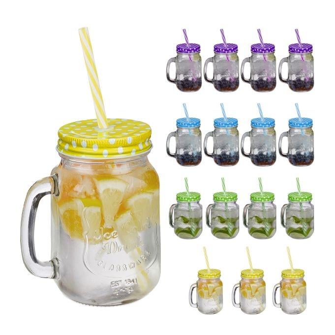 Genießen Sie erfrischende Sommergetränke mit unserem Limonadenglas mit Henkel. Es ist leicht zu trinken und schützt vor Schmutz. Perfekt für Saft, Eistee und Cocktails diese Gläser bereichern jede Zusammenkunft.