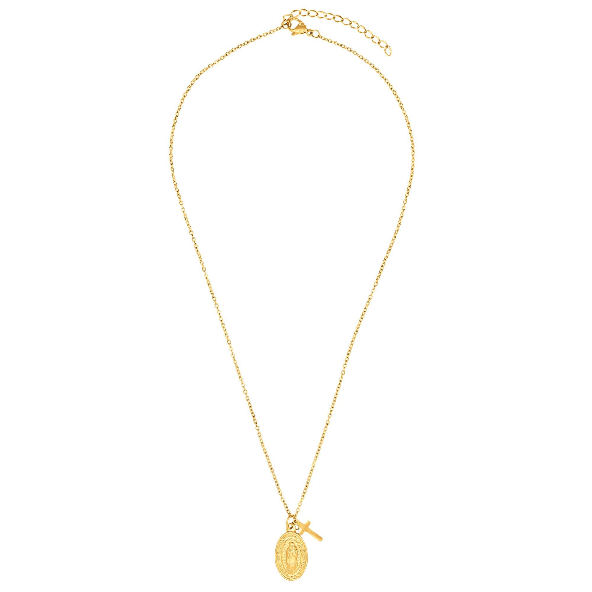 Das Besondere an der Kette ist das schlichte Kreuz und die Marienplakette. Damit eignet sich die Kette perfekt, um jedes Outfit besonders zu machen. Sie ist kein 08/15 Schmuck und überzeugt durch ein hervorragendes Preis-Leistungs-Verhältnis.