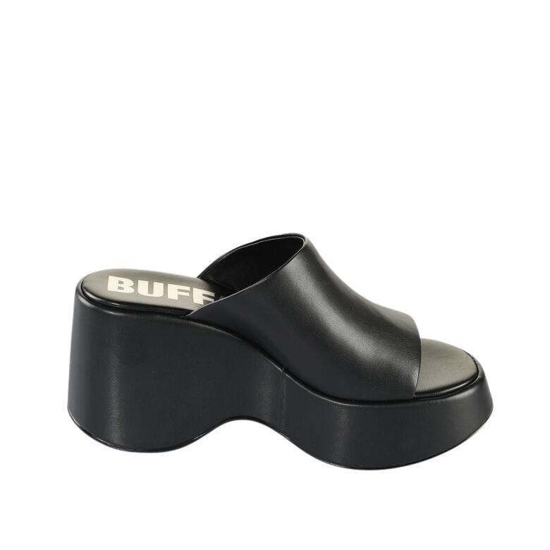 Diese veganen Keilsandalen präsentieren sich in Nappalederoptik mit einem breiten schwarzen Riemen. Das praktische Modell ohne Schnürsenkel und der Memory Foam sorgen für eine perfekte Passform.