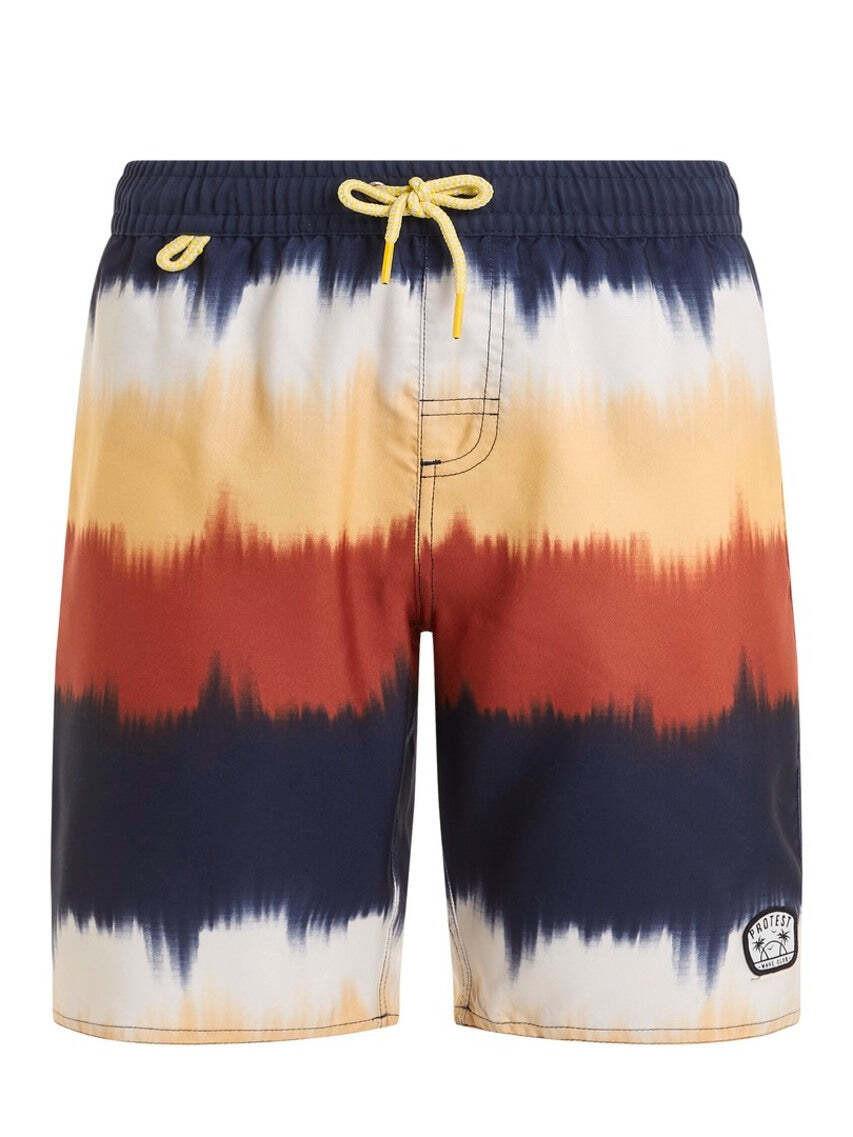 Die PRTCITY JR von Protest ist cool und bequem. Diese fantastische Beachshorts präsentiert sich in einem auffälligen Design mit coolem Farbverlauf. Am elastischen Bund befindet sich ein Zugband. Diese Shorts ist 46 cm lang und reicht bis zum Knie. In die Badeshorts integriert ist ein Innenslip, der zusätzlichen Schutz bietet. Sie hat eine normale Passform und eine Gesässtasche. In der PRTCITY JR von Protest hebst du dich vom Rest ab.