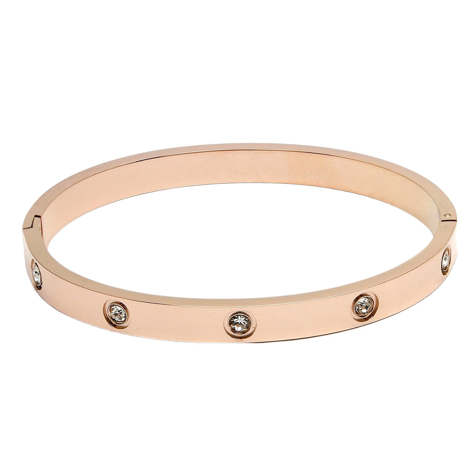Setzen Sie ein modisches Statement mit diesem goldplattierten Armreif, der zeitlose Eleganz und Opulenz ausstrahlt. Ganz gleich, welchen Stil oder welche Stimmung Sie bevorzugen, dieser Armreif bietet unzählige Möglichkeiten, Ihren individuellen Modegeschmack zum Ausdruck zu bringen. Größe: Durchmesser: 5,8 cm | Beschichtung: Roségoldplattiert | Verschluss: Zum Überziehen