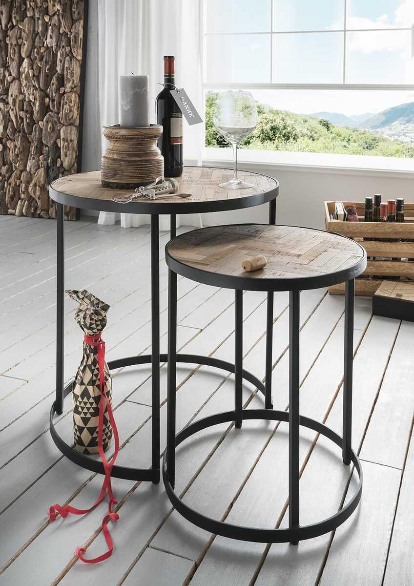mutoni Couchtisch Happy II Teak Grau Metall Schwarz 54x60 (2er-Set)
