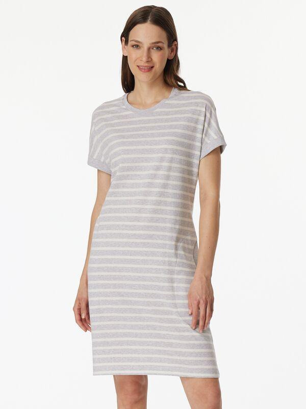 Dieses Sleepshirt bietet Komfort und Stil für erholsame Nächte. Das Design mit klassischem Streifenmuster macht es zu einer vielseitigen Ergänzung jeder Nachtwäsche-Kollektion. Die lockere Passform sorgt für Bewegungsfreiheit und ein angenehmes Tragegefühl.