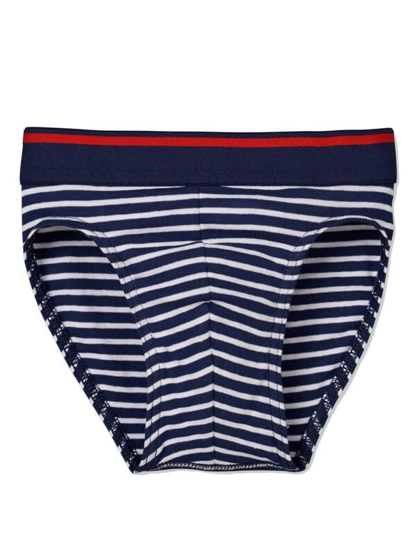 dunkelblau-weiss gestreift dunkelblauer Elastbund mit rotem Streifen