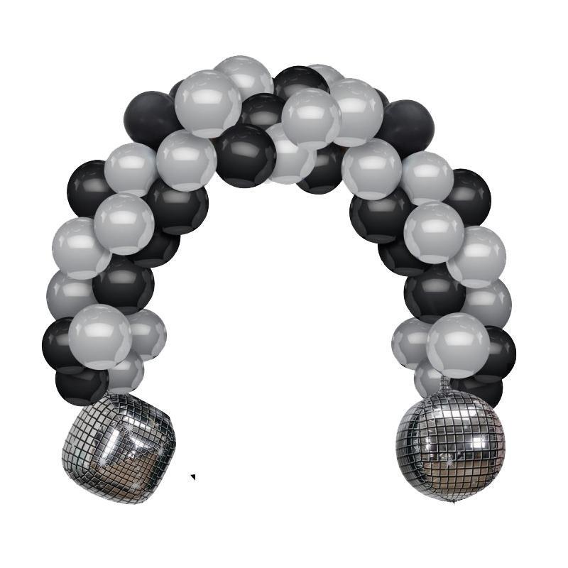 Schaffen Sie mit schönen Dekorationen eine wunderbare Atmosphäre im Partyraum! Dieses Set enthält aufblasbare Ballons und Discokugeln. Mit deren Hilfe können Sie dann einen festlichen Bogen errichten, der beispielsweise den Eingang oder die DJ-Kabine einrahmen kann.