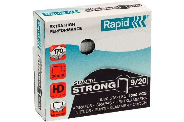 SUPER STRONG - Heftklammern Einzigartige, sehr starke Heftklammer. Entwickelt von Rapid für das Heftgerät HD9. Liefert das beste Heftergebnis. Hochwertig und stark. Zum Heften von 140 bis 170 Blatt (80 g/m² Papier) Jede Schachtel enthält 1.000 Heftklammern Rotes Symbol zur Hervorhebung der Kategorie SUPER STRONG Schenkellänge 20 mm Verzinkter extra starker Draht für beste Heftleistung Scharfe Enden für beste Durchdringung des Papiers