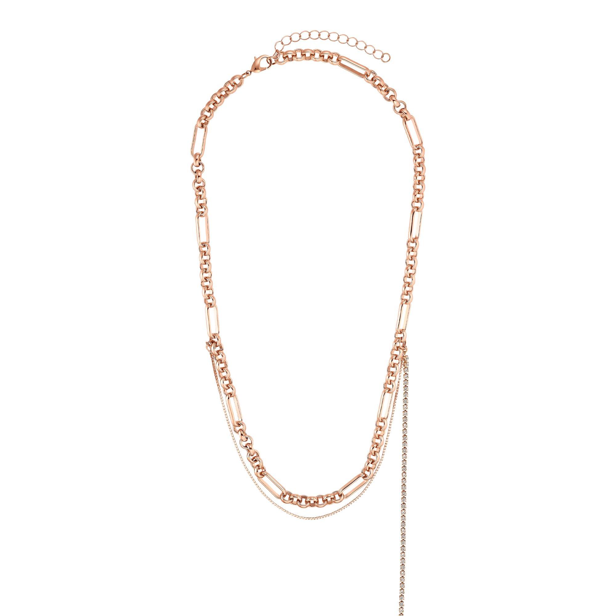 Look like a Lady! Diese Gliederkette ruft nach Tweedkostümen mit Minirock, nach Businessoutfits mit dem gewissen Twist, nach Stilbrüchen und Mode! Der besondere Clou: Die Kette mit den verschieden geformten Kettengliedern erhält Begleitung von einer schmalen Venezianerkette. An der Seite ist ein weiteres Schmuckelement angefügt lässig, cool und gewagt! Sei anders und stilvoll! Diese Kette hat das besondere Etwas und ist für elegante Frauen, die selbstbewusst aus der Reihe tanzen. Die Geschenkverpackung gibt es gratis dazu.