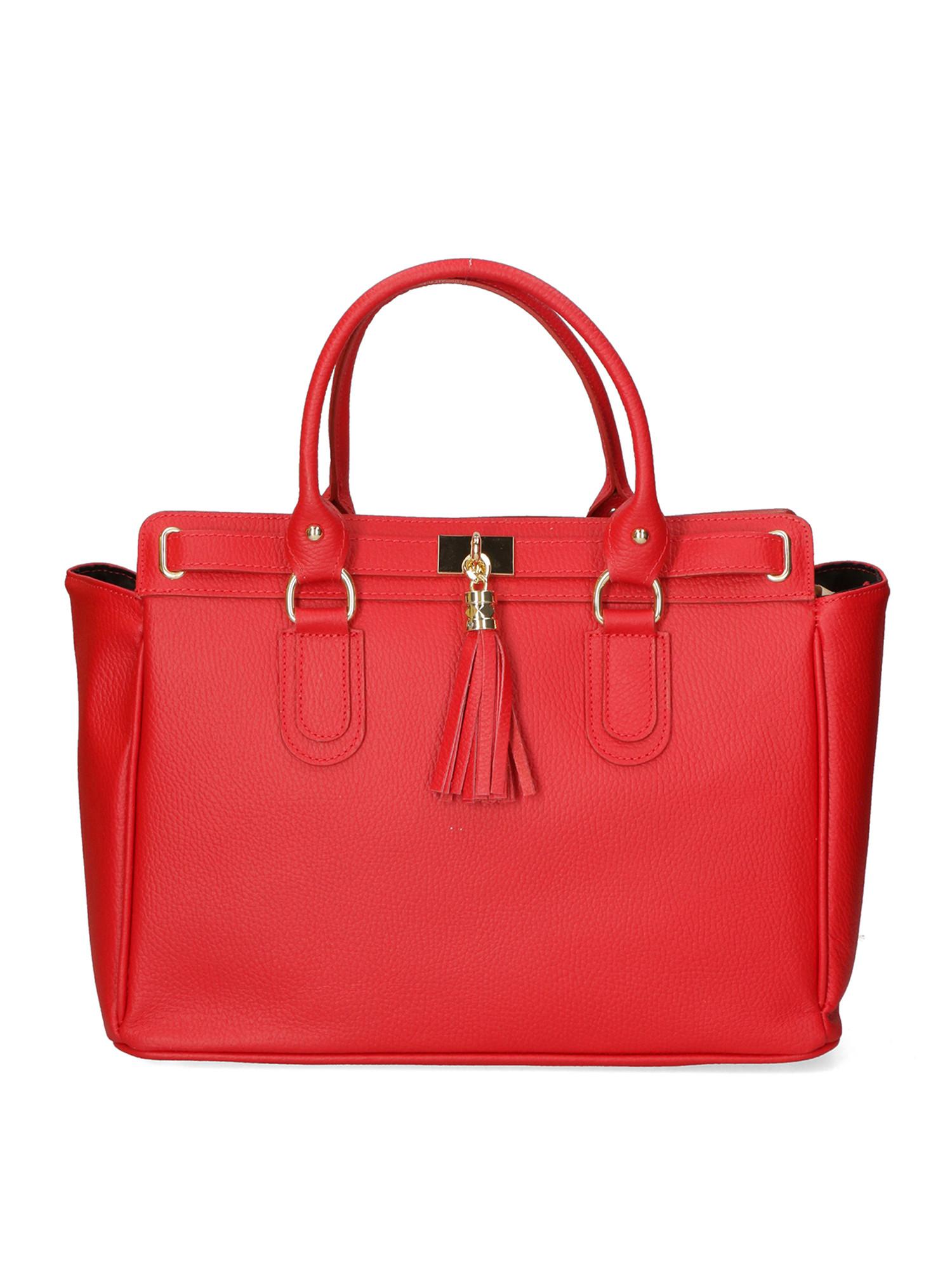 Diese Damenhandtasche verfügt über ein Fach, Doppelgriffe, eine dekorative Quaste vorne und einen verstellbaren, abnehmbaren Schultergurt. Es handelt sich um ein italienisches Handwerksprodukt aus echtem Dollarleder.